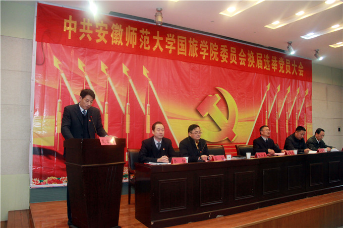 本网讯 (国旅学院 赵将 陈健)11月23日下午,中国共产党beat365英国官方网站国土资源与旅游学院委员会换届选举大会在国旅学院实验楼101教室隆重举行。校党委组织部副部长、人事处处长朱为民,国旅学院党委原书记、校审计处处长吴春雷,国旅学院党委原副书记、校基建处副处长罗振及民主党派和无党派人士应邀出席会议,学院全体教工和学生党员共计146名正式党员和46名预备党员参加了会议。大会由国旅学院院长苏勤主持。