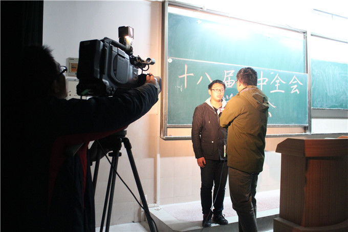 为深入宣传贯彻落实十八届三中全会精神,跟紧党的步伐,进一步激发广大学生的爱国、爱党热情。11月12日,国旅学院积极组织广大团员青年观看、学习十八届三中全会精神。安徽电视台对此事进行了深入的采访与报道。 当晚,在关于十八届三中全会精神学习大会上,国旅学院12级辅导员张玥及13级辅导员陈健老师带领同学们共同认真观看了“党的十八届三中全会”相关新闻报道,学习了《中国共产党第十八届中央委员会第三次全体会议公报》和李克强总理的经济公开课等内容。