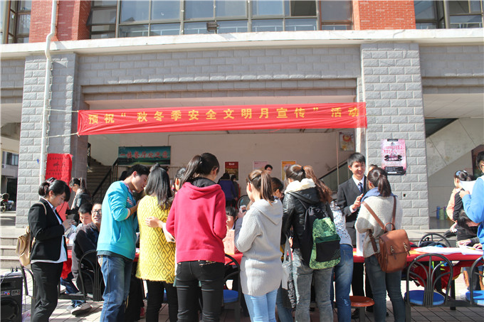 本网讯(学生会记者团 陈华东、徐凯旋、刘钰)为了进一步加强秋冬换季安全文明知识宣传,提高全校师生员工的安全防范意识。学院于11月17日正式启动了以“创建安全校园、争做文明学生”为主题的第4届“秋冬季安全文明月”教育宣传活动。