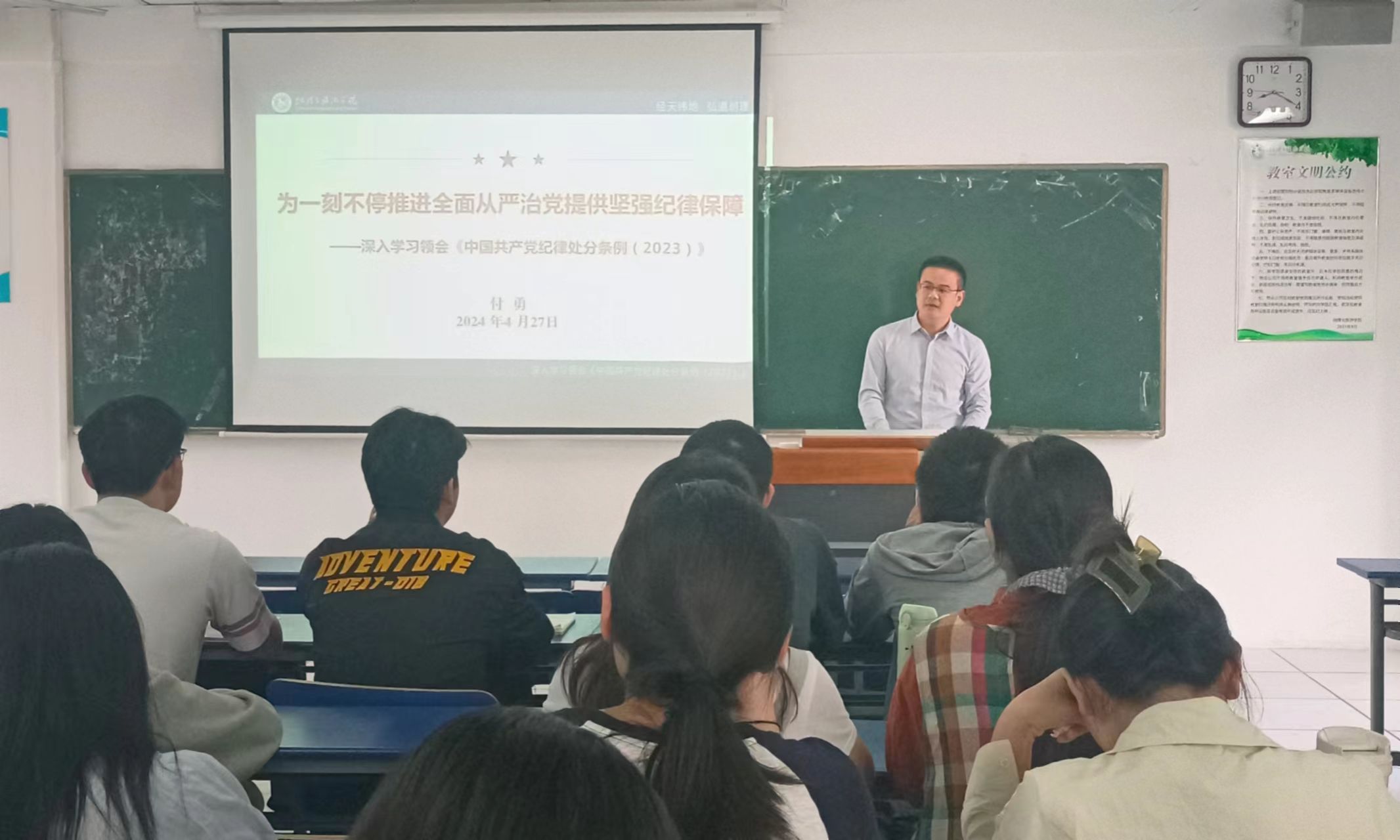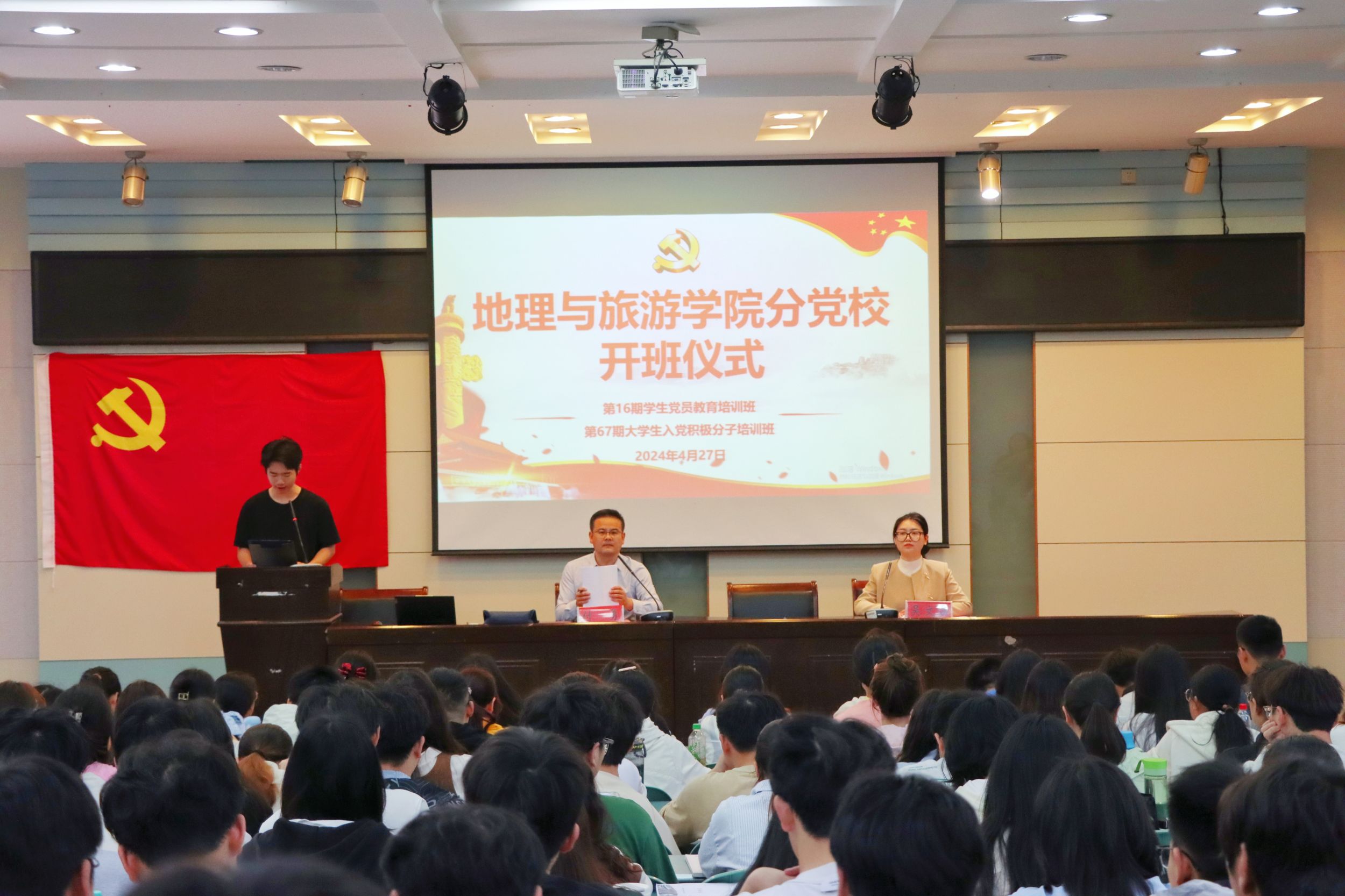 4月27日上午,学院分党校开班典礼在学院实验楼101报告厅举行。学院党委副书记付勇、分党校班主任吴文涵及培训班全体学员共同参加。仪式上,吴文涵介绍了培训班的课程内容和具体要求。朱昱桐作为学员代表从青年视角出发,立足当下,展望未来,阐述了党课学习的重要性和必要性。付勇在总结讲话中勉励学员们珍惜学习机会,端正态度,学用结合,以理论武装思想,以信念修养党性。