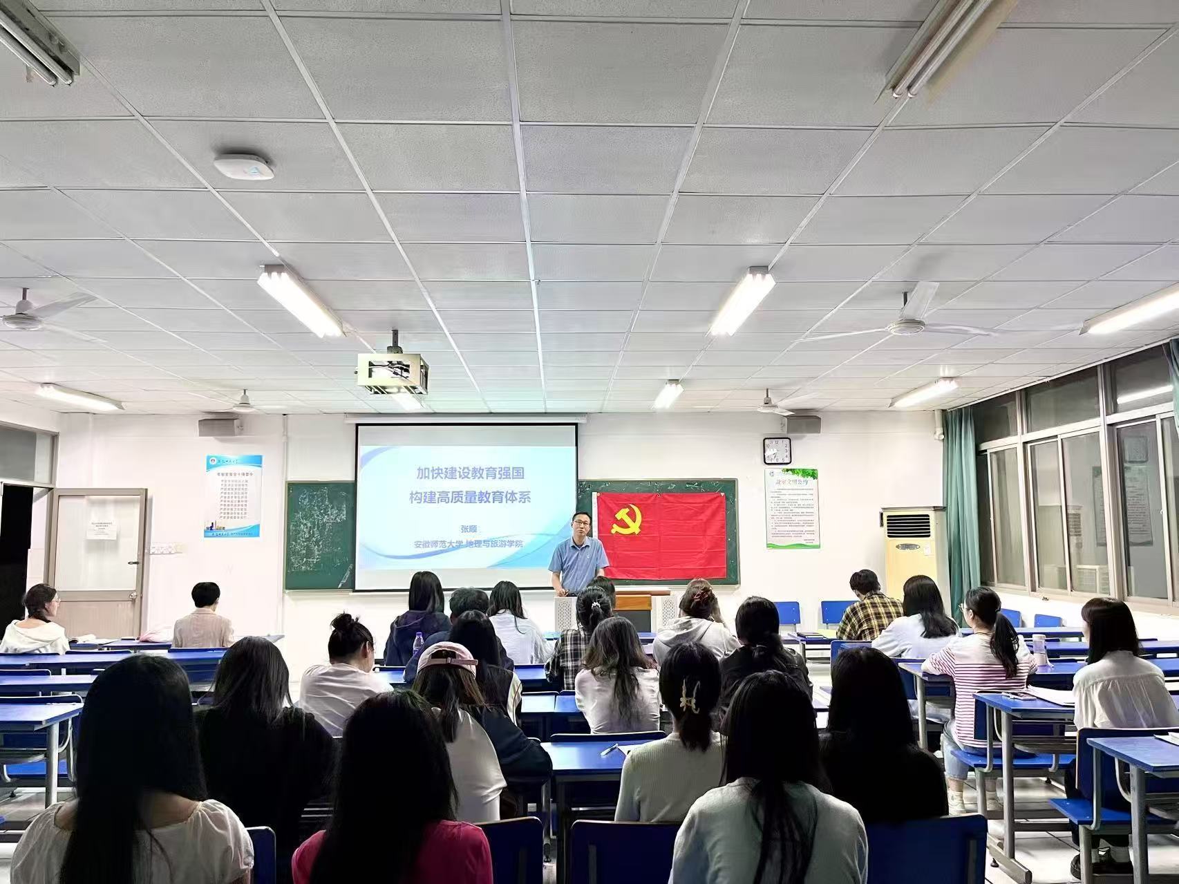 授课紧紧围绕《加快建设教育强国,构建高质量教育体系》主题结合日常实际工作,详细解读了《教育强国建设规划纲要(2024—2035年)》,系统回顾了全面推进教育强国建设的战略任务和重大举措,指出教育强国建设是全面建成社会主义现代化强国的战略先导,是实现高水平科技自立自强的重要支撑,也是促进全体人民共同富裕的有效途径,落实教育强国建设任务,需要全体教育工作者锚定目标,跑好历史的接力棒。