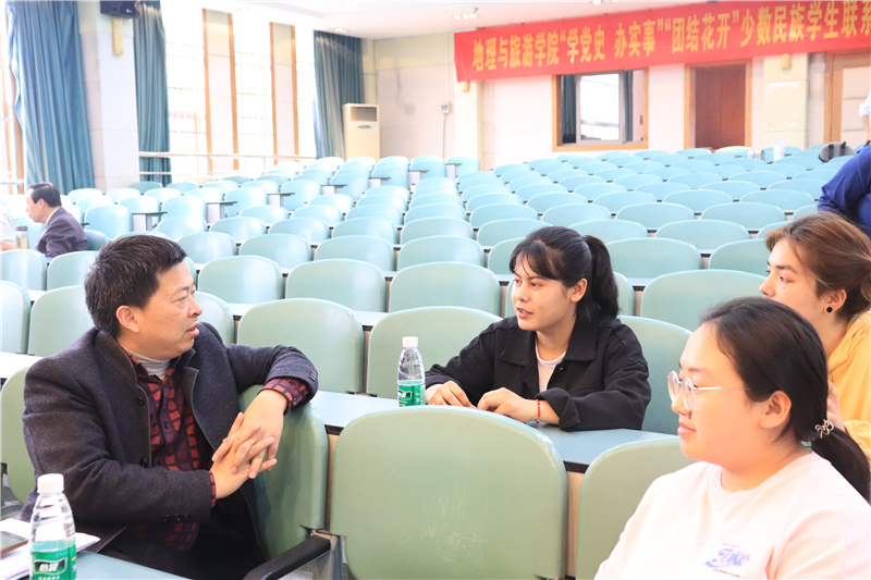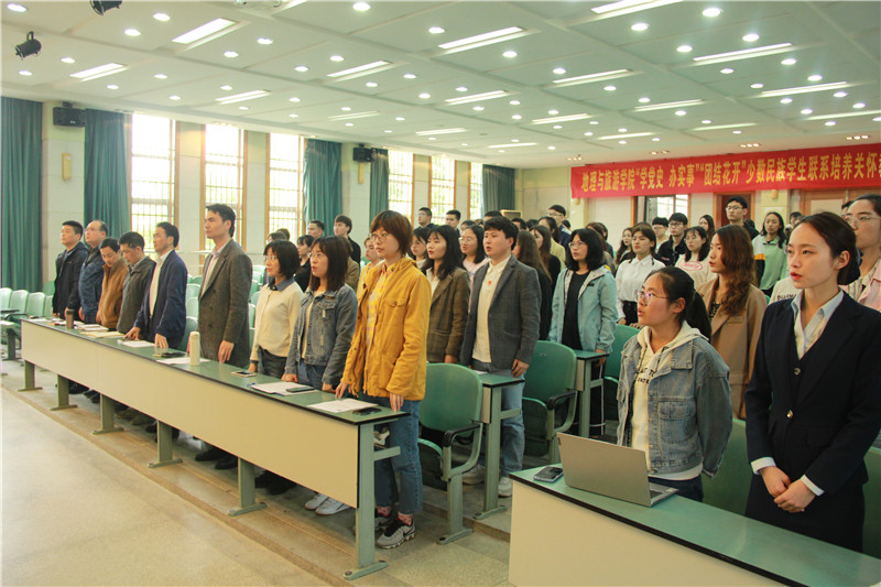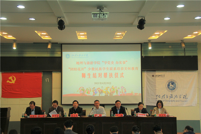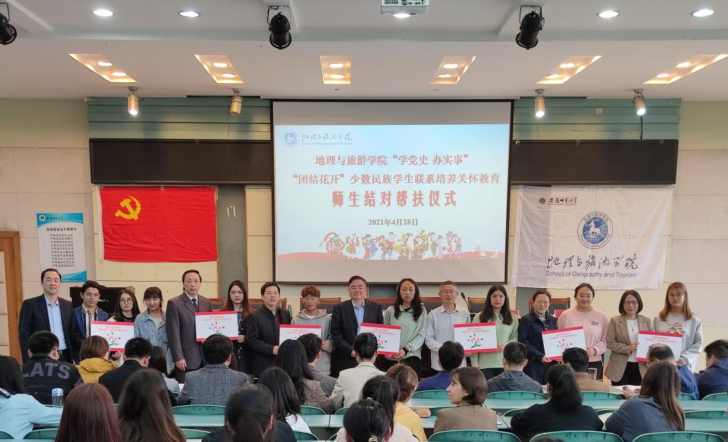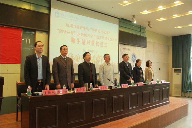 本网讯 (地旅学院 赵佳慧 任婕)为深入贯彻习近平总书记关于民族工作的重要讲话精神,积极宣传党的民族政策,加强新疆西藏等少数民族学生教育管理服务工作,促进民族团结进步,4月28日下午,beat365英国官方网站结合党史学习教育“我为师生群众办实事”实践活动,在院实验楼101报告厅举行“学党史 办实事”“团结花开”少数民族学生联系培养关怀教育师生结对帮扶仪式。院党委委员、各教工党支部书记、专业负责人、辅导员以及全体少数民族学生出席此次活动,活动由学院党委副书记乔静主持。
