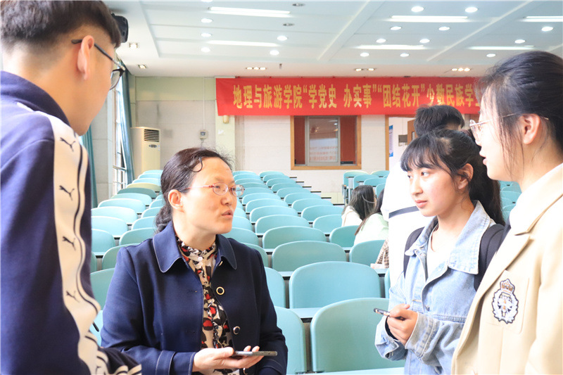据悉,地旅学院长期以来高度重视少数民族学生培养教育工作,作为全校少数民族学生招生规模最多学院之一,学院目前共有少数民族学生78人,包括维吾尔族、藏族等14个民族,其中新疆籍少数民族学生41人,西藏籍少数民族学生6人,学院定期开展少数民族学生师生座谈会、中秋国庆文艺晚会、民族文化节等活动,关心关爱少数民族学生的成长,培养出中国大学生自强之星提名奖获得者、安徽省优秀大学生、校第八届“自强之星”穆萨艾力·多力坤,学校首位维吾尔族男生党员、校“十佳大学生”帕尔哈提,学校首位应征入伍的维吾尔族“四有”优秀士兵阿卜来提·阿卜力克木等一批少数民族优秀典型。
