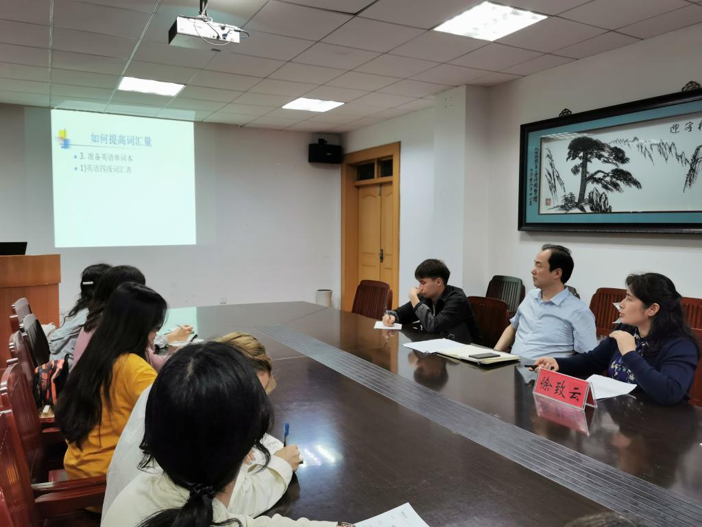课程最后乔静对于本次课程进行总结,再次向徐致云老师表示感谢,并以自身经验向大家传授了通过英语考试的相关经验,嘱咐同学们要把握课堂,认真学习。
