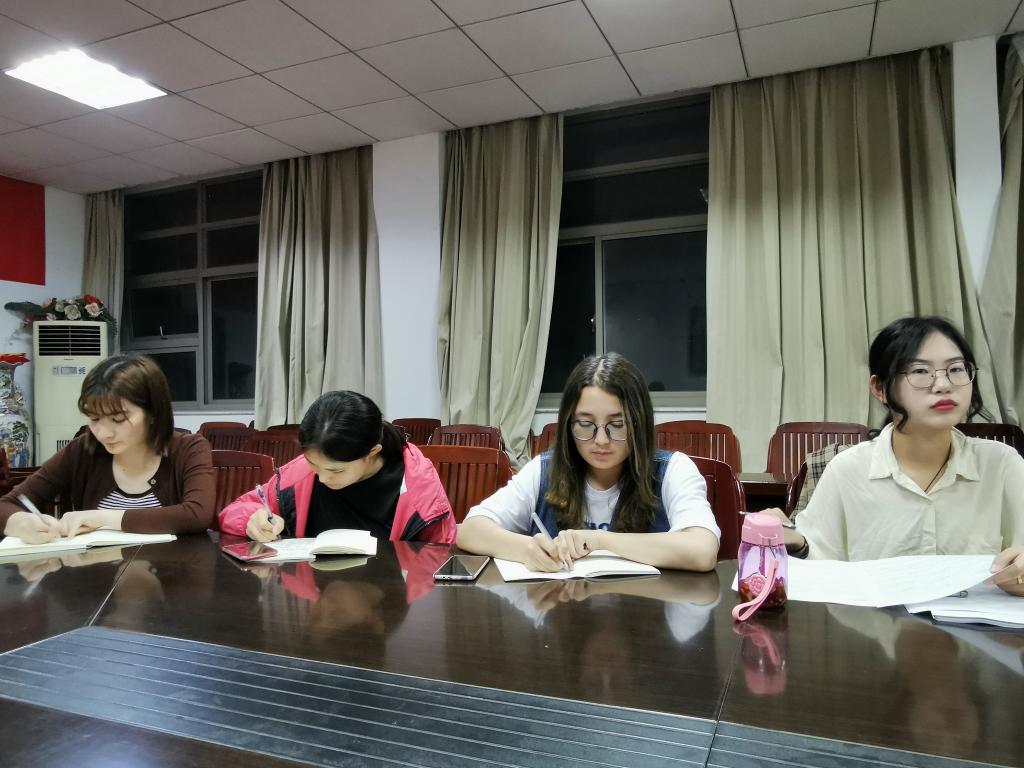 本网讯(地旅学院 丁茹栩)为深入贯彻习近平总书记关于民族工作的重要讲话精神,加强新疆西藏等少数民族学生教育管理服务工作,切实帮助解决少数民族同学在英语学习和四级英语测试方面存在的困难问题,促进民族团结进步,5月13日晚8点,beat365英国官方网站“团结花开”民族班英语班在地旅学院行政楼三楼会议室进行第一次集中授课。地旅学院副教授、硕士生导师徐致云应邀为同学们主讲《四级考试学习方法及技巧》课程,地旅学院党委副书记乔静、英语班代理班主任丁茹栩、全体英语班同学参加本次课程。