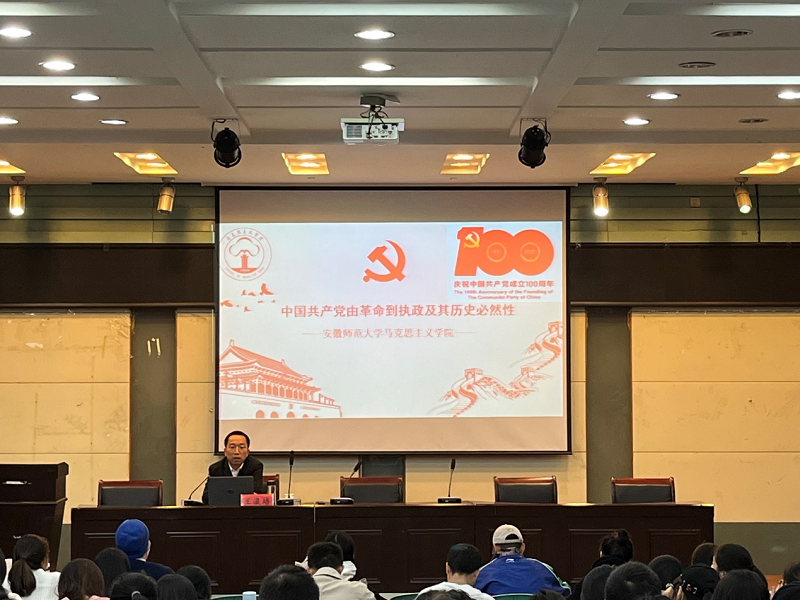 本网讯(地旅学院 王海凤)2021年10月23日晚上,beat365英国官方网站分党校邀请马克思主义学院博士王瀛培老师以《中国共产党从革命到执政及其历史必然性》为主题为beat365校第11期党员培训班和校第62期入党积极分子培训班全体学员讲授党课,全体学员在院实验楼101报告厅聆听了党课。