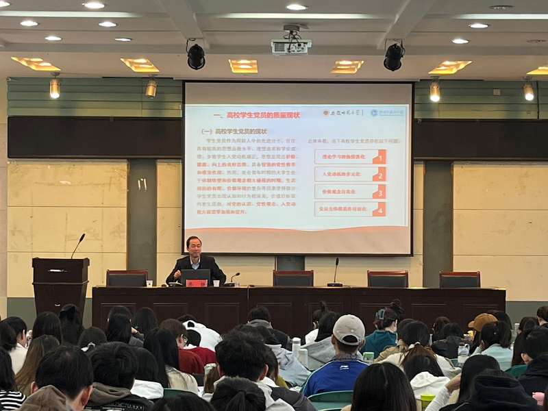 在王美老师的主持介绍下,乔静书记在同学们热烈的掌声中开始了本次培训,他从高校学生党员的质量现状、新时代合格党员发展标准、力争做好新时代合格党员、践行学生党员发展工作要求和发挥学生党员示范表率作用五个方面对学员们进行了谆谆教诲,例举了很多党员先锋模范典型,指明了学生党员和入党积极分子需践行和努力的准则要求,争做“五育并举”素质全面优秀的学生党员和入党积极分子。