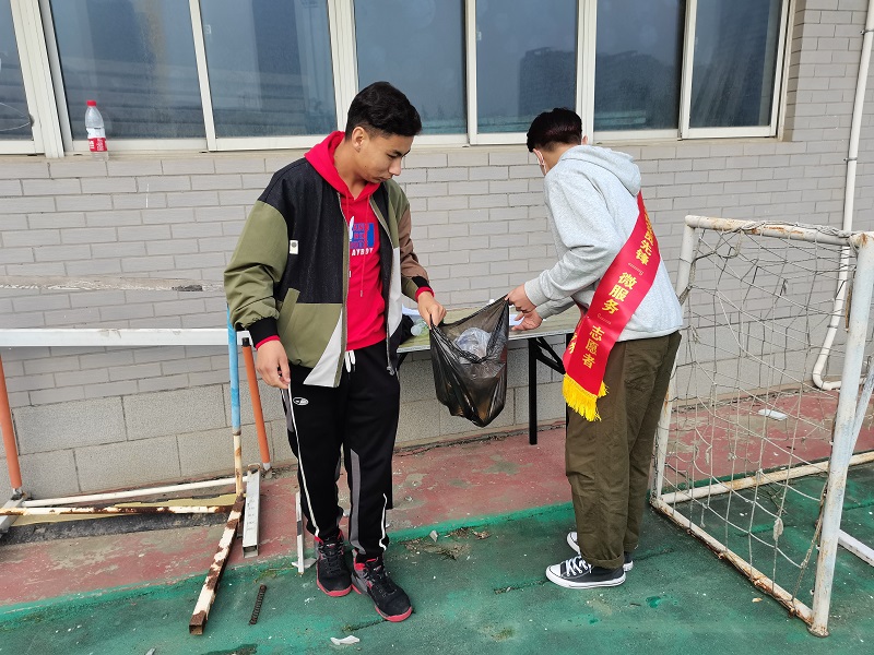 本次实践主要结合我校第50届田径运动会的开办进行卫生清洁、场地维护和人员指引服务,同时有部分小组进行了校园教学楼教室和beat365实验楼的卫生清洁,在和煦的阳光沐浴中,校园中活跃着同学们劳动的靓丽身影。晨起微微刺骨的秋风并没有减弱培训班学员们为学校做志愿服务的热情。学员们佩戴颜色鲜艳的绶带,热火朝天地进行志愿活动。入口处,我们的学员们热情地进行指引;运动场上,我们的学员拿起扫把仔细清扫运动会场地的每个角落,有的学员甚至用纸巾将运动会场地草皮里面不易扫出的垃圾单独捡出来,认真且仔细的身影是青春最亮丽的底色。
