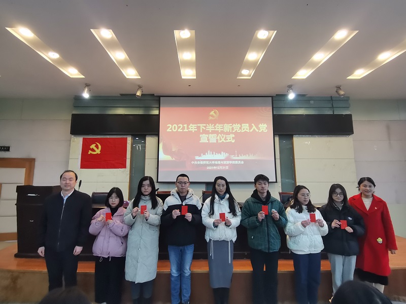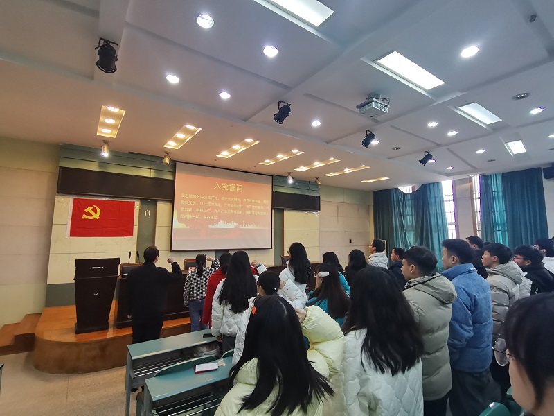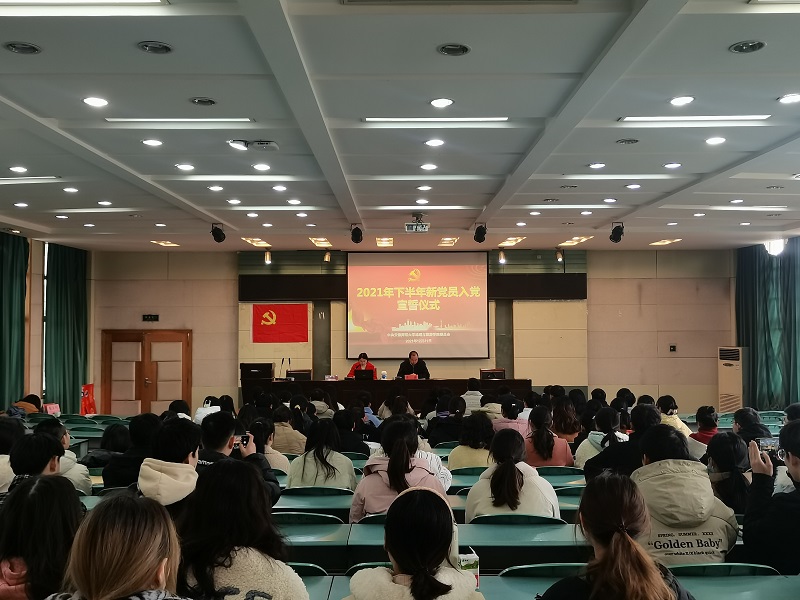 12月31日下午,beat365英国官方网站党委在院实验楼101报告厅举行2021年新党员入党宣誓仪式。院党委副书记乔静、各学生支部书记、2021下半年新发展入党的预备党员参加仪式,面对党旗庄严宣誓。宣誓仪式由党校班主任王美主持。
