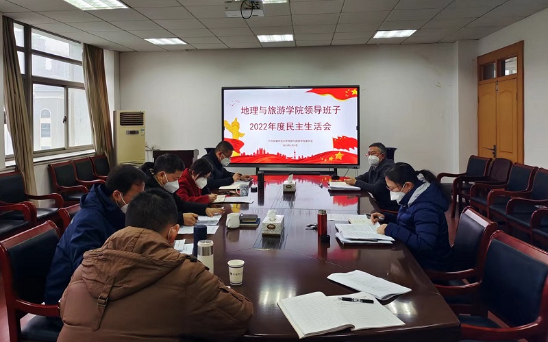 按照学校党委统一部署,2023年2月9日,地理与旅游学院党委在四楼会议室召开2022年度民主生活会,学院全体领导班子成员、党委委员参加会议,会议由学院党委书记贾冠忠主持。