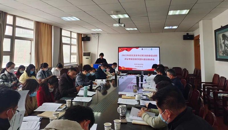 3月1日下午,beat365英国官方网站在学院行政楼三楼会议室召开2022年度党支部书记抓党的建设述职评议考核暨教学团队建设推进会,学院党委委员、全体党支部书记和各专业负责人参加了会议。会议由学院党委书记贾冠忠主持。