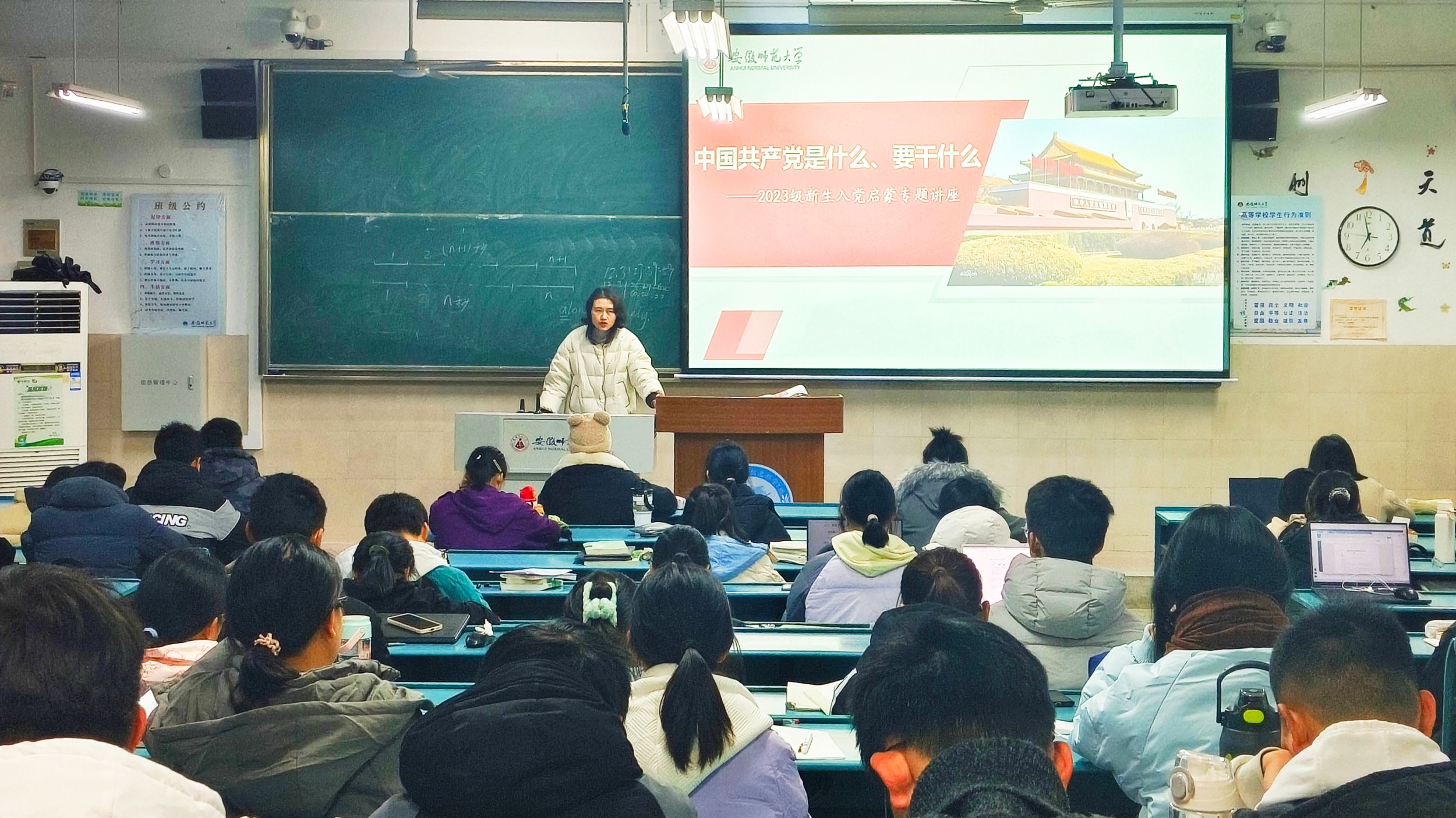 12月11日,beat365英国官方网站开展“中国共产党是什么、要干什么”专题讲座,从理论和实践相结合、历史和现实相贯彻、国内和国外相关联的维度,为全体新生深入分析了中国共产党成立的时代背景和历史必然,全面论述了中国共产党成立以来团结带领全国各族人民取得的重大成就,以大无畏的牺牲精神和英雄气概通过浴血奋战、建立了新中国,艰苦奋斗、确立了社会主义制度,弃旧图新、开启了改革开放的伟大历程,笃定从容、昂首奋进在伟大的新时代,踔厉奋发、开启全面建设社会主义现代化国家新征程,创造了经济快速发展奇迹、社会长期稳定奇迹,正在以中国式现代化推进强国建设、民族复兴,希望同学们立大志、明大德、成大才、担大任,以实际行动和责任担当把握人生方向、擦亮青春底色、练就过硬本领、肩负历史使命,早日成为一名光荣的中国共产党党员!