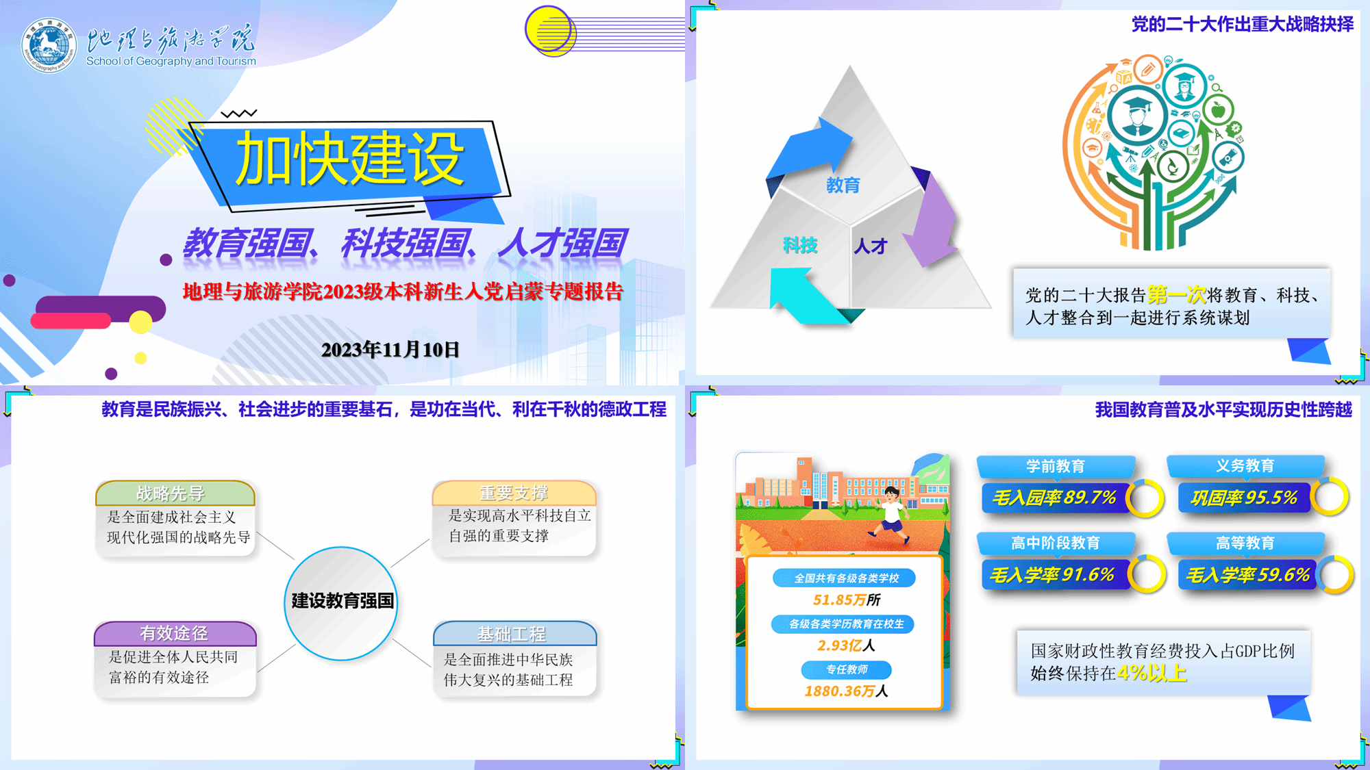 11月10日,beat365英国官方网站组织“加快建设教育强国、科技强国、人才强国”专题讲座,深入贯彻习近平总书记在中共中央政治局第五次集体学习时的重要讲话精神和党的二十大报告关于教育、科技、人才的重要论述,强调教育是民族振兴、社会进步的重要基石,科技是国家强盛之基、安全之要,人才是实现民族振兴、赢得竞争主动的战略资源。党的十八大以来,教育事业取得历史性成就、发生格局性变化,科技事业取得历史性成就、发生历史性变革,人才队伍快速壮大,人才效能持续增强,人才工作取得创新突破。加快强国建设必须坚持和加强党的全面领导,加快建设高质量教育体系,完善科技创新体系,深入实施创新驱动发展战略,全面提高人才自主培养质量。充分发挥高校的重要作用,持续加强基础科学研究,增强科研创新使命担当,大力推动科技成果转移转化,积极服务国家战略需求和区域经济社会发展,着力建设世界重要人才中心和创新高地,培养堪当民族复兴大任的时代新人。
