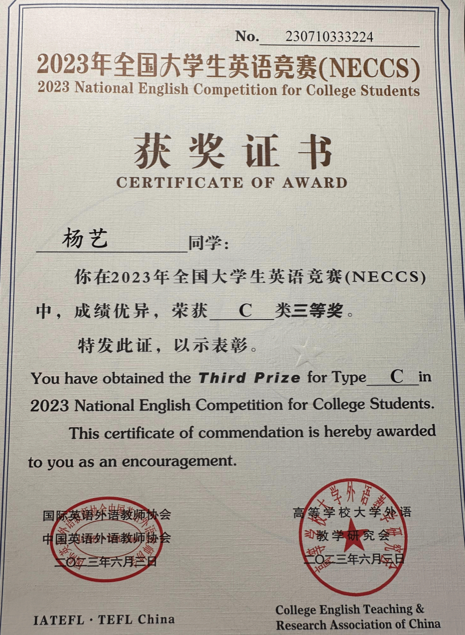 2023年大学生英语竞赛国家级二、三等奖