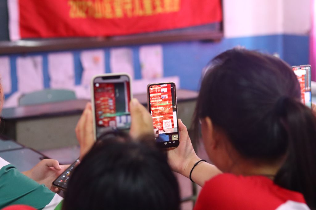 山区孩子用手机扫码登陆“红色足迹”数字地图线上进行党史学习教育