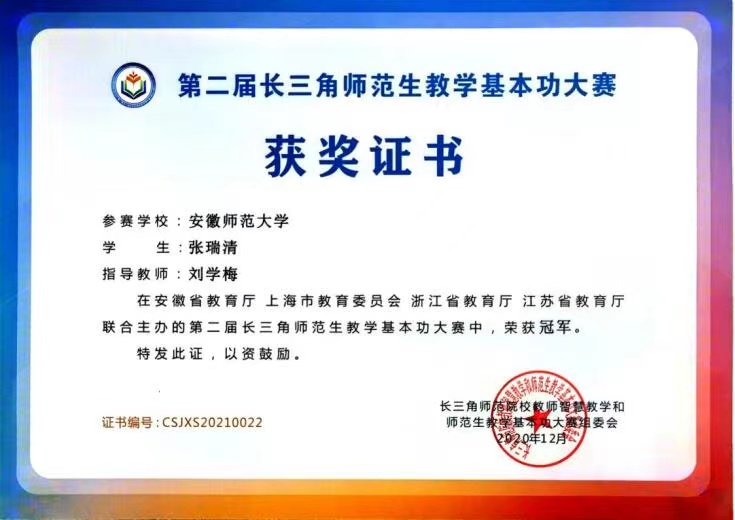 第二届长三角师范生教学基本功大赛中学地理组冠军