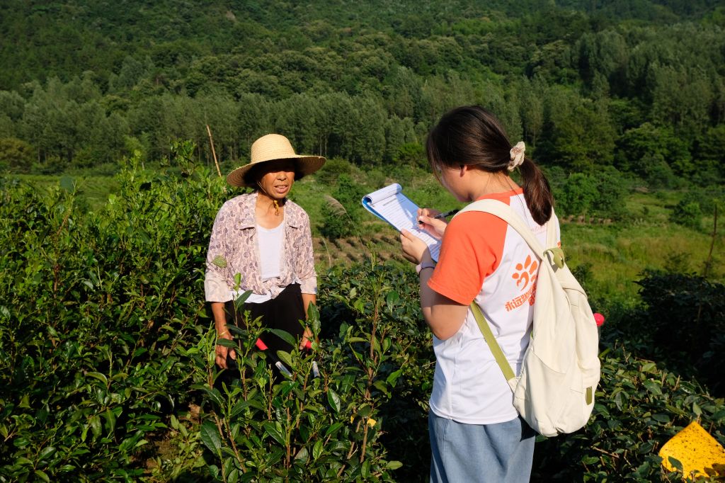 实践队员与村民进行田间对话