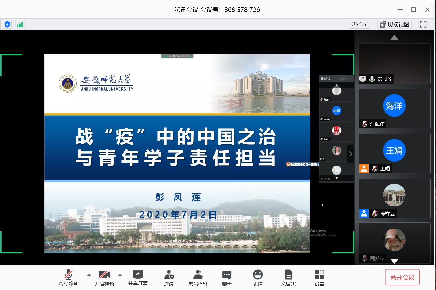 副校长彭凤莲走进“云端”课堂为beat365本科生讲授形势与政策课