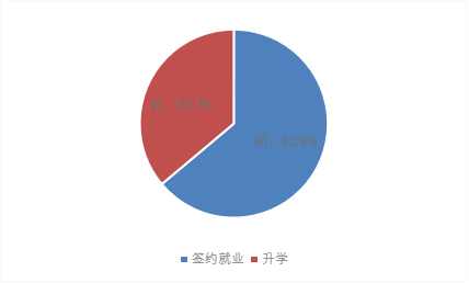 2018年,旅游管理专业毕业生就业率达98.7%,考研率达11.86%。其中签约就业103人,占毕业人数的87.28%,升学14人,占毕业人数的11.86%。2018年旅游管理专业具体毕业生就业去向比例构成详见图9: