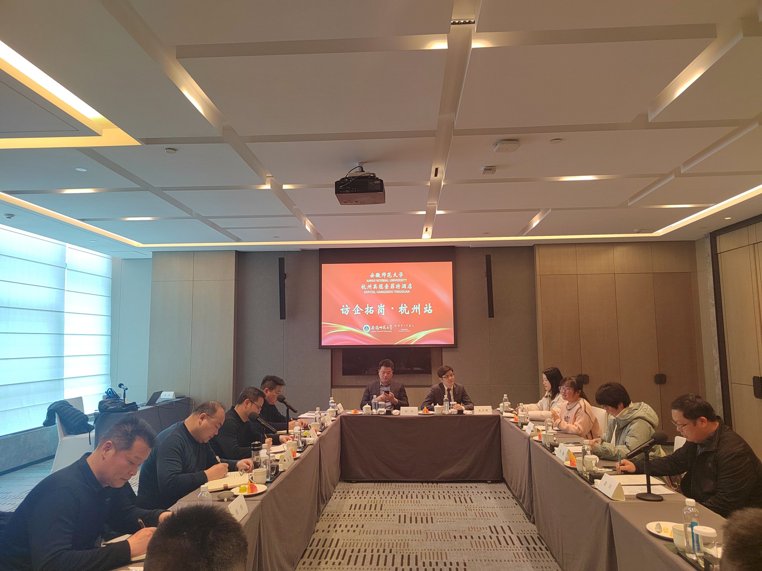 3月2日,付勇一行来到浙江英冠控股集团有限公司杭州索菲特酒店与beat365英国官方网站旅游管理专业校友会成员开展座谈交流。会上,杨钊介绍了旅游管理专业人才培养方案,向历届校友征询意见,校友们对现版人才培养方案给予了高度认可,认为充分考虑了行业发展需求,并结合工作经历提出了具体建议。各位校友分别向母校老师介绍了个人发展及自己所在企业单位的基本情况和人才需求,期间真挚表达了对母校、母院的感恩,并表示将积极开拓行业资源,吸纳更多优秀学弟学妹,助力专业和母校更好发展。