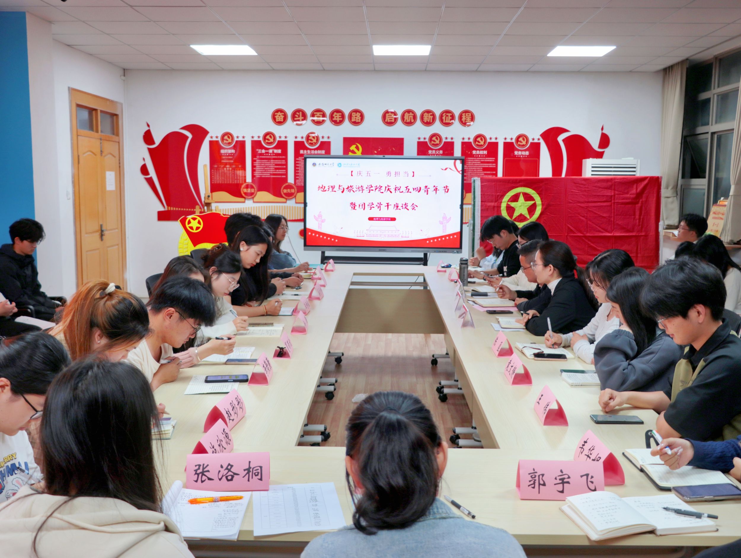 本网讯(地旅学院 彭馨妍)“五四”精神传薪火,激扬青春献光彩。为庆祝五四青年节,提高团学组织活力,积极构筑学生与学院之间的思想桥梁,beat365英国官方网站团委于5月6日晚在学院行政楼2楼党员活动室召开庆祝五四青年节暨团学骨干座谈会。会议由院团委书记韦银艳主持,院党委副书记付勇,院团委副书记吴文涵,学院团委、学生会各部门负责人及成员代表参加会议。