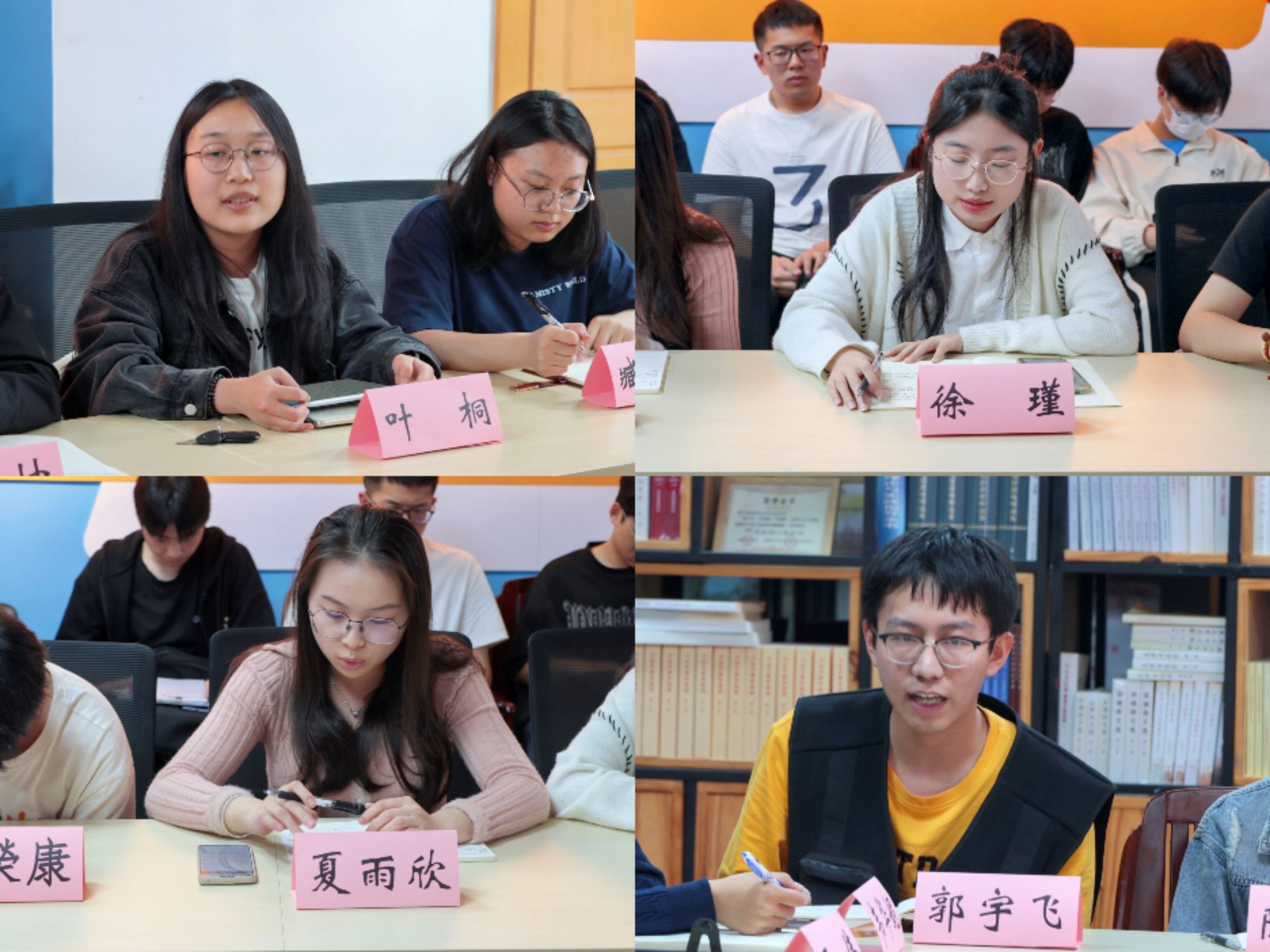 座谈交流环节,同学们纷纷交流学习工作感悟。蔡子坤提出新时代青年要有所作为:一要勇于担当,用新时代的眼光讲好青年一代的故事;二要广泛阅读,形成对事物理性客观的辩证性思维;三要积极承担责任,成为连接老师与同学的坚实桥梁。徐瑾着重强调了在团学工作中细节的重要性。她坦言,这是团学工作给予她的最大收获:细节不仅关乎工作质量,更直接关系服务水平的高低。李诗毅提到注重各部门的协调性在学生工作中具有重大意义,她结合自身举办文体活动的经历,特别指出“分工明确、提前策划、积极心态”是活动顺利举办的三个必胜法宝。在组织并参与活动的过程中,她深受活动热烈氛围的感染,更加致力于为文体活动注入新思维、新活力。