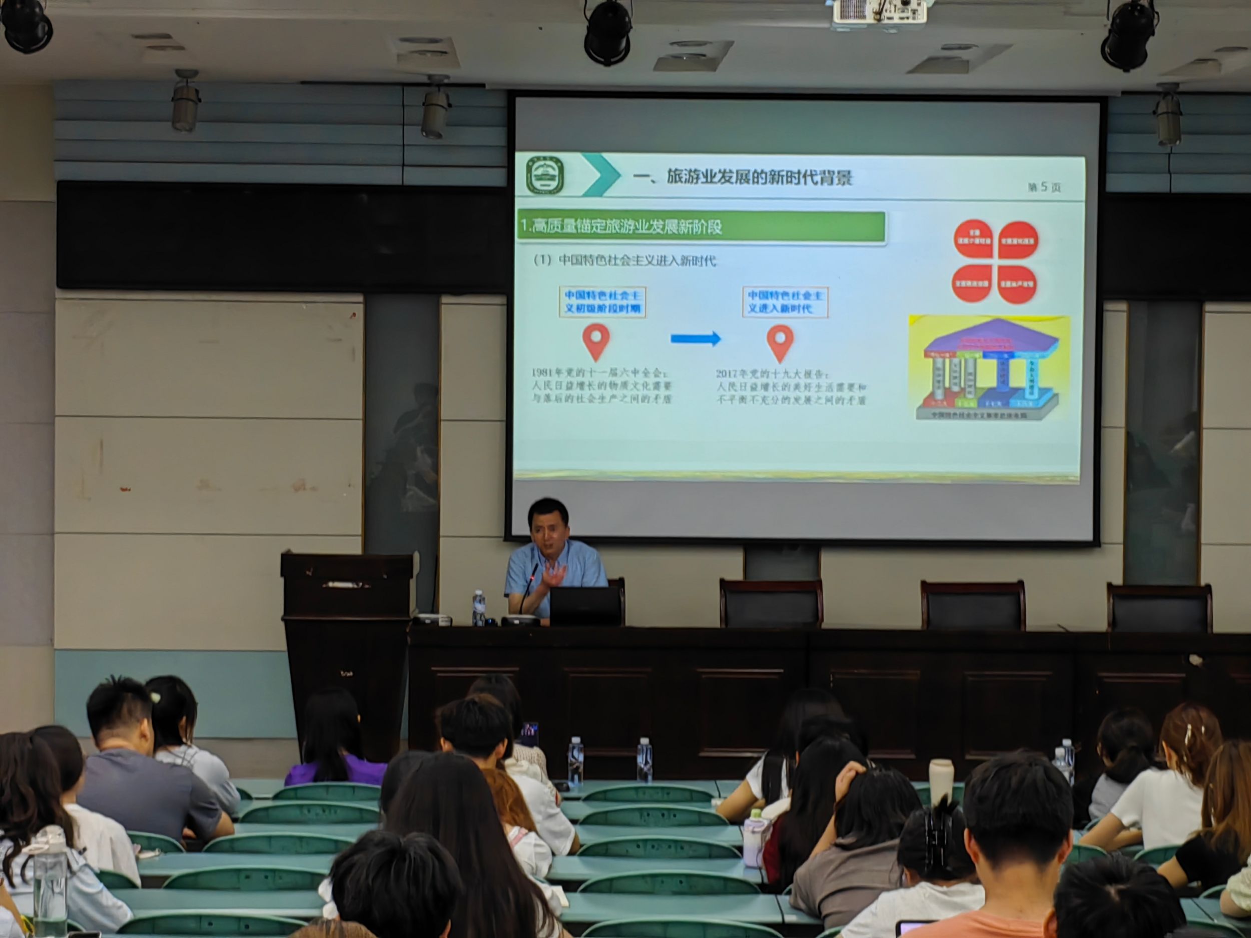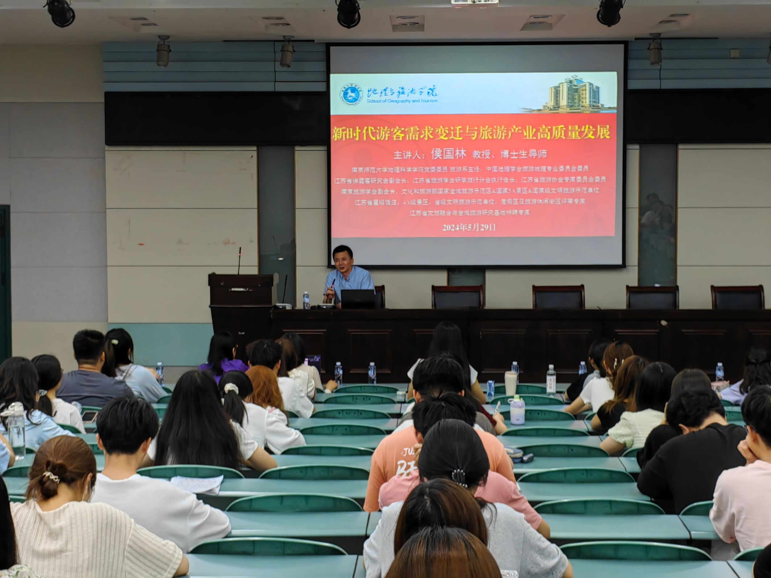 中国地理学会旅游地理专业委员会委员,江苏省徐霞客研究会副会长,江苏省旅游学会研学旅行分会执行会长,南京师范大学地理科学学院党委委员、旅游系主任侯国林教授应邀为beat365英国官方网站学子作题为《新时代游客需求变迁与旅游产业高质量发展》专题讲座,旅游管理专业教师王咏、王莉,辅导员齐小学,2023级旅游管理专业本科生和部分研究生参加。专题讲座由旅游管理专业教师杨效忠教授主持。