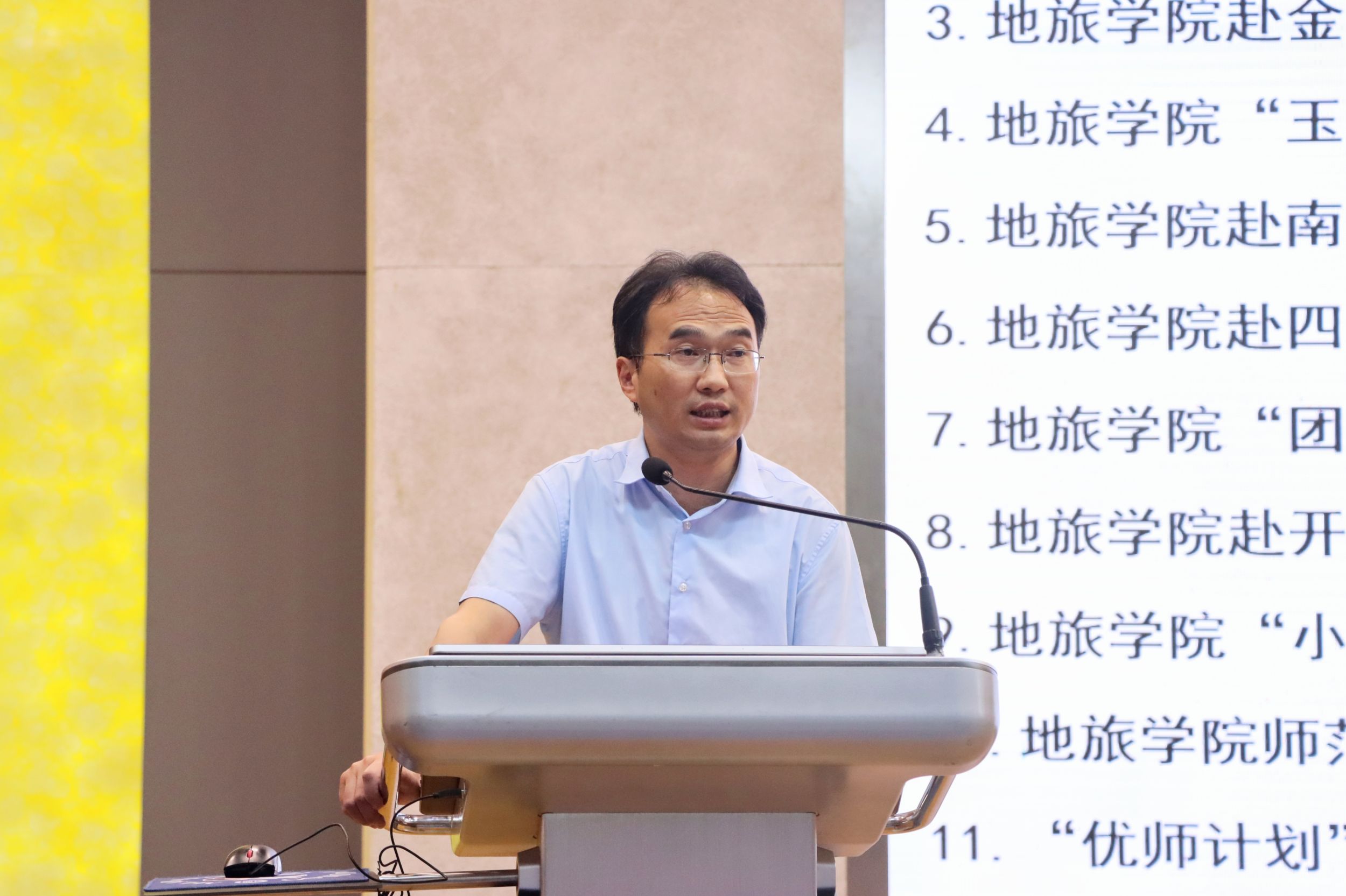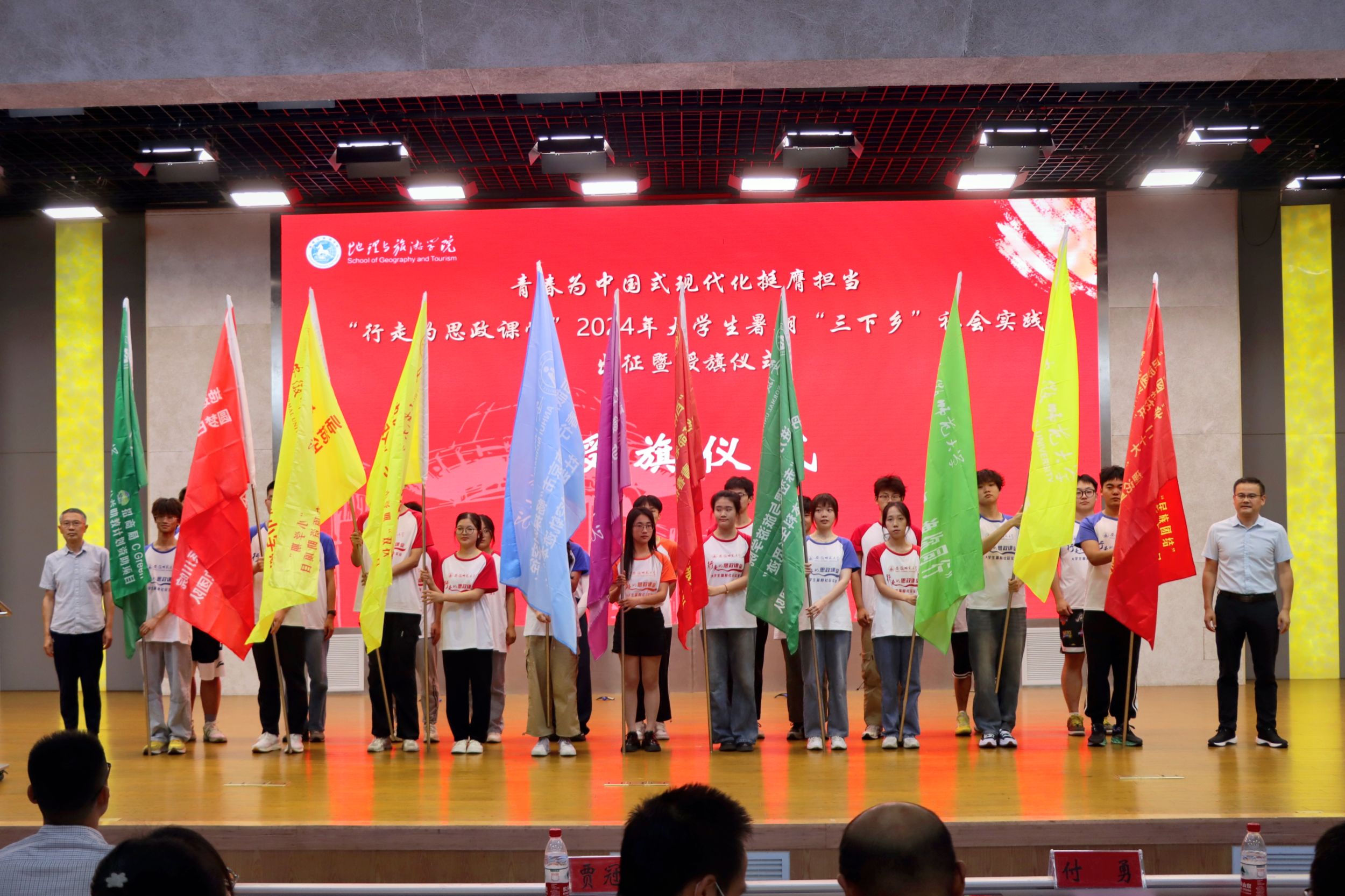 本网讯(地旅学院 余玉银)7月7日,beat365英国官方网站“行走的思政课堂”2024年大学生暑期“三下乡”社会实践出征授旗仪式于理科大楼成功举办。马克思主义学院思政指导教师孔卫拿,beat365英国官方网站党委书记贾冠忠,副书记付勇,副院长汪文文,副院长杨兴柱,暑期实践指导教师代表、专兼职辅导员和全体暑期社会实践队员到场参加仪式。仪式由2021级地理科学(拔尖人才班)专业蔡子坤和2021级地理信息科学专业姚兰主持。