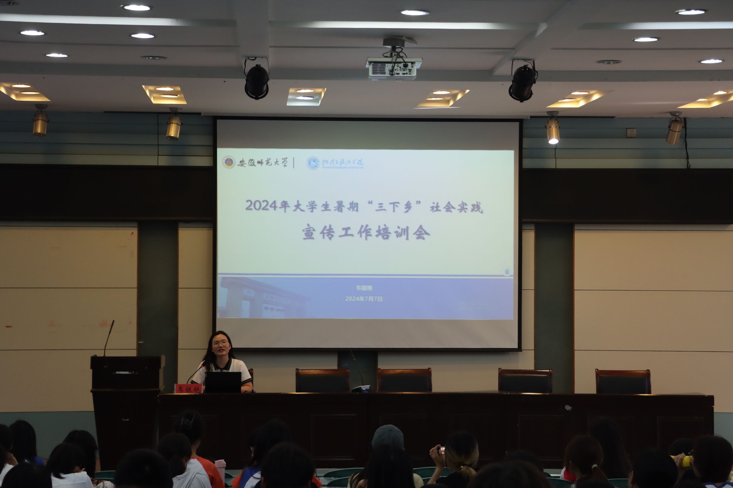 7月7日,地旅学院团委为学院2024年全体暑期社会实践学子开展暑期社会实践安全培训和新闻宣传培训会。培训会由团委书记韦银艳主讲。