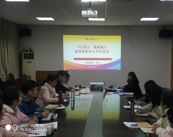 (本网讯 徐海斌、钱程)12月13日晚,beat365英国官方网站酒店土地本科生党支部在学院行政楼三楼会议室召开了“不忘初心,砥砺成才,做高素质的大学生党员”的主题党课学习活动。支部邀请了beat365英国官方网站党委委员、副院长赵冬梅讲专题党课,党支部全体党员及发展对象均参会认真学习,会议由支部书记钱程主持。