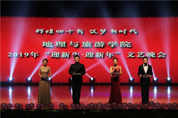 迎新年”文艺晚会。校党委常委、副校长毕明福,校党委组织部部长季爱新,校党委宣传部部长胡靖,校发展规划处处长王刚,校党委学工部部长、学生处处长刘晓宇,校保卫处处长孙成岗,校资产与实验室管理处处长台启权,校后勤集团总经理叶丹,校工会主席赵红,校信息管理中心主任史铁杰,校团委书记梁燕,校人事处副处长姜长付,校资产与实验室管理处副处长朱棣,体育学院党委副书记崔世兵等领导老师与特邀嘉宾、学院93级优秀校友、芜湖市城乡规划局局长房国坤先生莅临晚会,地旅学院领导班子和全体师生参加了此次晚会。