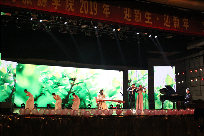 五湖四海,花津相聚,鸠兹启航,梦想不移。器乐合奏《再见花津河》奏起别离的笙箫,昔日幼鸟成长为雄鹰,2019届毕业生即将出发,离开师大校园,翱翔广阔天地;古典舞《雍容汉唐》呈现中华瑰宝,描绘汉唐盛世,演员们身着红袖霓裳,翩翩起舞,摇曳生姿,新时代下传统文化历久弥新;合唱《我喜欢》勾勒美好生活,呼唤新年愿景。
