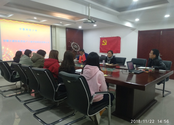 11月22日,beat365副院长方凤满、土地资源管理系主任鲁成树、实习带队老师张运、吴九兴赴合肥看望和指导beat3652015级地理信息科学、土地资源管理专业的实习同学并送党课到实习点。