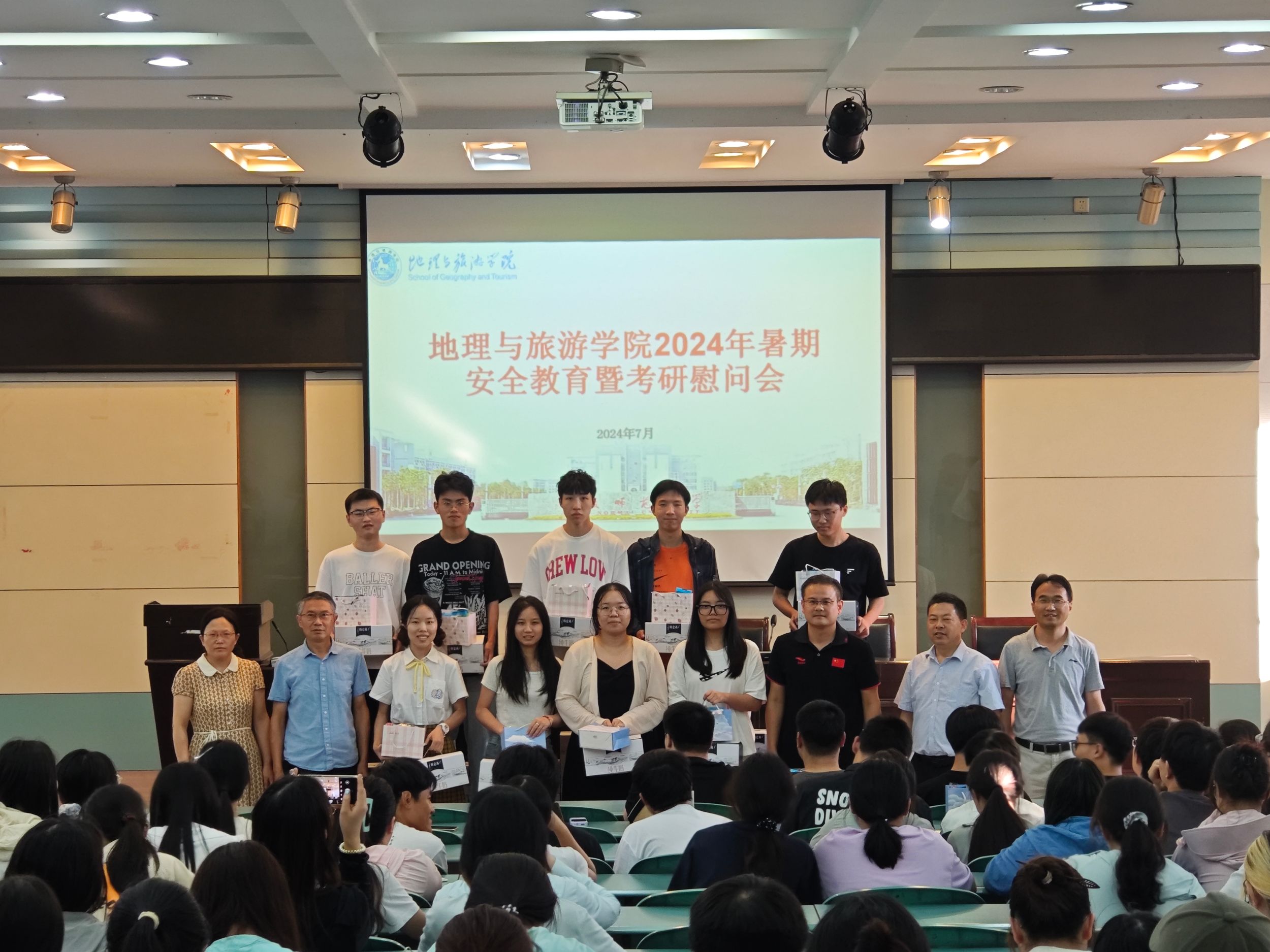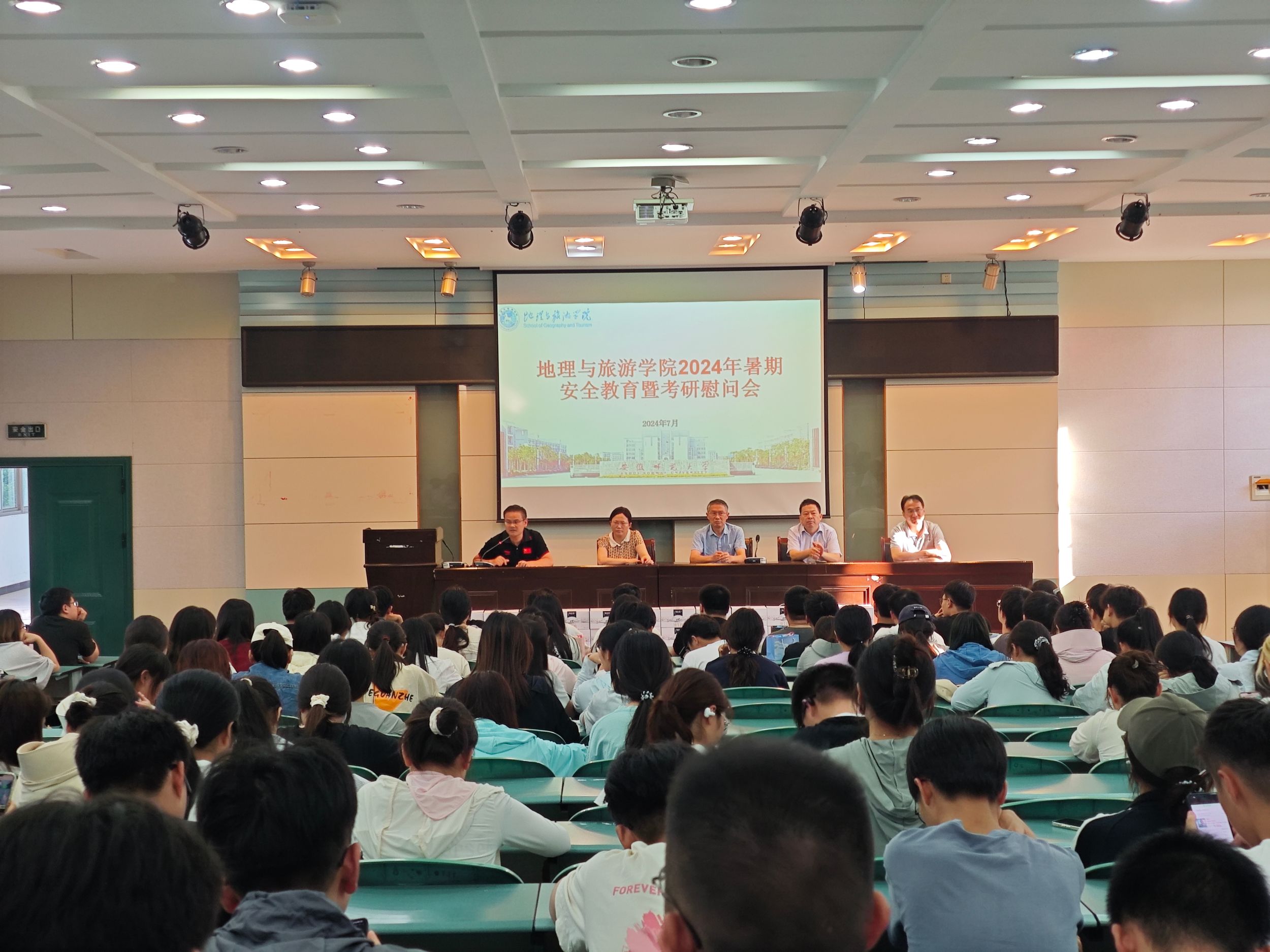 为了解关心留校复习考研和备赛集训学生留校中期情况,帮助学生增强考研信心,7月31日,地旅学院在实验楼101报告厅开展2024年暑期留校学生安全教育暨考研慰问会。学院党委书记贾冠忠、院长方凤满、党委副书记付勇、副院长曹卫东、副院长杨兴柱,相关辅导员及全体留校考研、集训学生参会。会议由付勇主持。