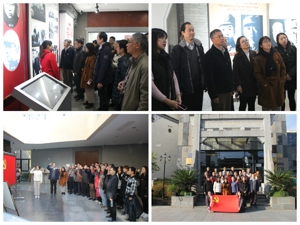 贾冠忠一行首先参观了纪念馆各展厅,大家仔细观看陈列在馆内的每一张图片、每一段文字材料和每一件珍贵革命文物,一起重温了那段硝烟弥漫的光荣历史,探寻了叶挺、项英及陈毅等同志率领7000余官兵在皖岩寺集中整编新四军的传奇历程。参观完毕,面对鲜红的党旗,带着对革命先烈们的深刻缅怀之情,全体党员举起右拳激情澎湃地重温了入党誓词。“我志愿加入中国共产党,拥护党的纲领,…随时准备为党和人民牺牲一切,永不叛党。”,铿锵有力的宣誓声响彻大厅,表达了“不忘初心、牢记使命、继续前进”的坚定政治信念。