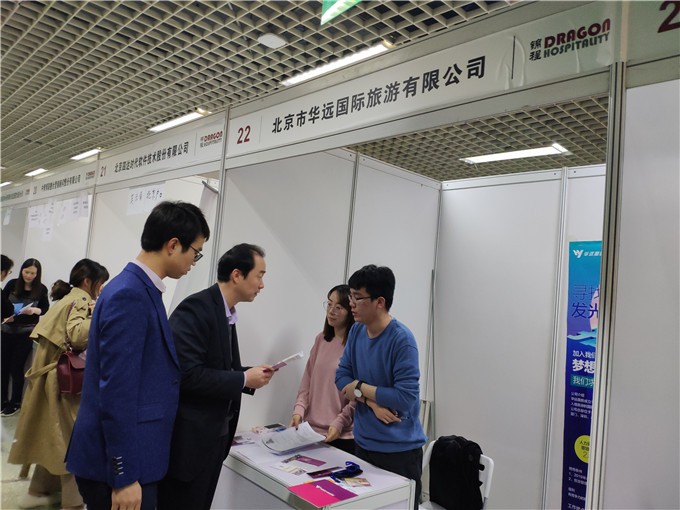 17日上午恰逢北京第二外国语学院毕业生秋季大型校园招聘会,北京市及周边省市近90家企业前来招聘语言、教育、艺术、旅游、酒店等专业的毕业生。乔静与吴辉一同前往招聘会现场,与相关企业的招聘人员交流询问,了解企业概况、招聘需求、薪资待遇等信息,主动邀请各企业来beat365英国官方网站招聘。招聘会结束后,乔静还亲切慰问了正在该校旅游学院读研的beat3652017届旅游管理专业毕业生陈微、周晓莹,勉励二人好好学习,尽早落实升学或工作规划,并且要心系母校,常回家看看。