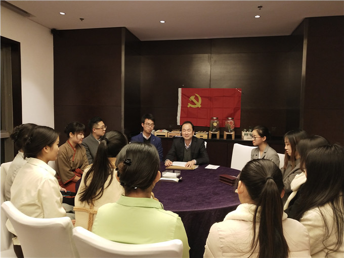 结束了北京人才大厦的调研行程,乔静一行来到北京金茂威斯汀酒店,看望正在该酒店进行专业顶岗实习的2016级旅游管理专业本科生。以实习小组组长梁宇宸为代表的12名同学已经在该酒店实习了3个多月,见到领导老师来访倍感亲切,依次汇报了实习的所见、所闻、所思、所感,吴辉和王阳作为曾经经历过酒店顶岗实习的前辈,给同学们的具体问题提出了自己的建议,乔静认真倾听同学们的发言,详细解答大家实习期间的困惑。座谈会上,乔静主讲了“送党课到实习点”主题党课,传达了全国教育大会精神,带领实习小组中的党员和入党积极分子学习了习近平总书记有关乡村振兴和旅游发展的重要讲话,为同学们补充了丰富的精神食粮。