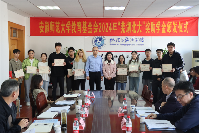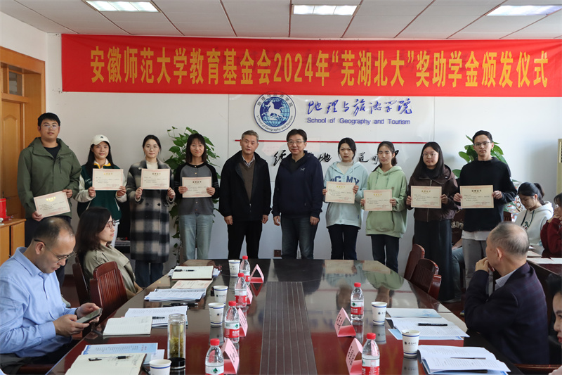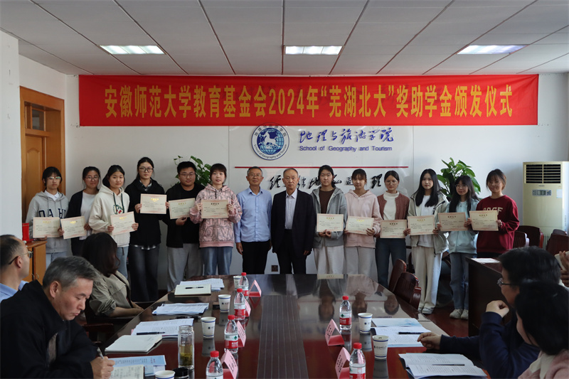 10月23日,地旅学院在学院行政楼三楼会议室举行2024年“芜湖北大”奖助学金颁发仪式,北京大学芜湖校友会会长吕国猛,副会长童劭琼、周玉森,校教育基金会副理事长兼秘书长王如意,校学生处副处长项家春,学院党委书记贾冠忠,副院长杨兴柱、汪文文以及辅导员代表和获奖受助学生代表参加颁发仪式,仪式由学院党委副书记付勇主持。