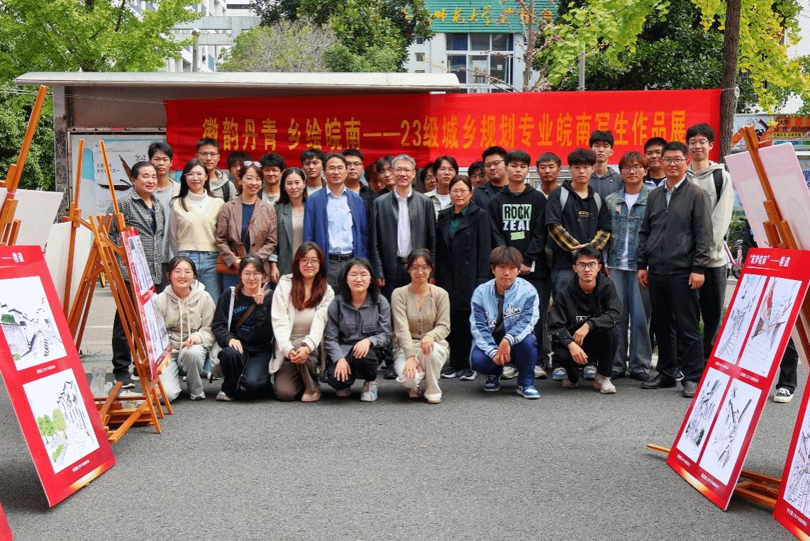 为提升学生实践能力和专业技能,增强学生对中国传统古村落历史文化的感受,营造文化育人的校园环境,近日,beat365英国官方网站城乡规划专业在花津校区二食堂门口举办了“徽韵丹青、乡绘皖南”皖南写生作品展。校教务处处长崔光磊、地旅学院院长方凤满、副院长杨兴柱,城乡规划专业负责人韩会然、专业指导老师李俊峰、黄秋实、金莹莹、李婷君,以及2023级城乡规划全体学生参加了本次画展。