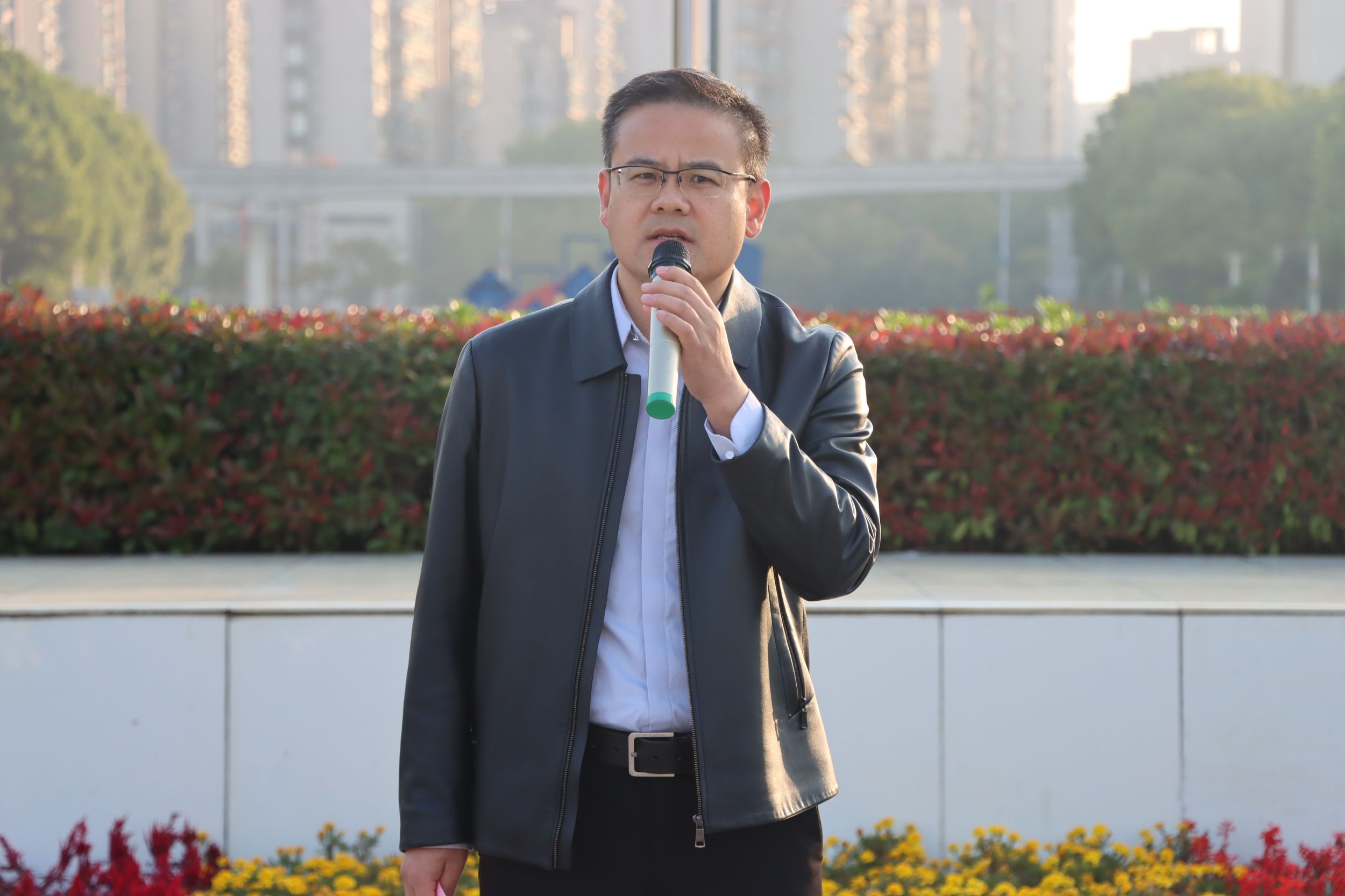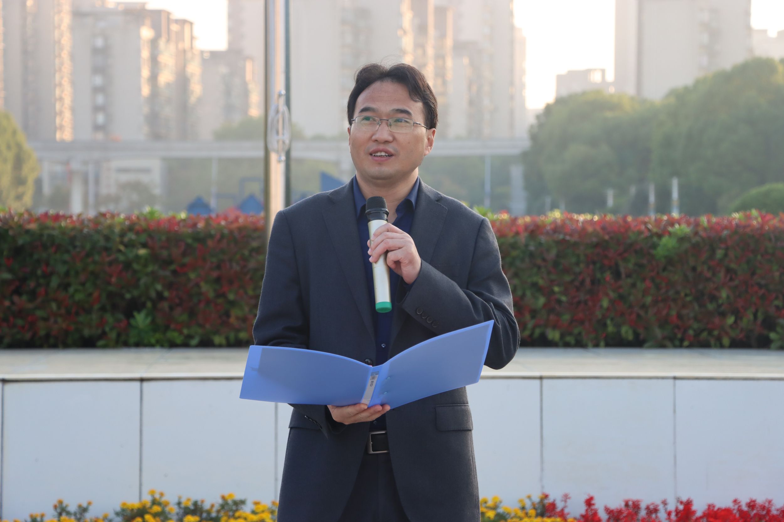 杨兴柱面向全体新生讲授国旗下的思政课。他条分缕析地提出了大学生活的四个关键词:家国情怀、理想、责任、奋斗。他以巴黎奥运为例,提出了新时代青年应关注国家大事,深刻思考国家发展,将个人梦融入中国梦。其次,他希望学生们结合个人专业特长和社会需求,合理科学地设立人生理想,制定大学四年的阶段目标,支持学生们多投身科研项目,培养专业精神与沟通能力。然后,他寄语新生们勇于担责,承担学生的责任,承担新时代青年的责任。最后杨老师鼓励学生们广泛涉猎,勇于质疑,敢于创新,为自己的青春、国家的未来而奋斗。