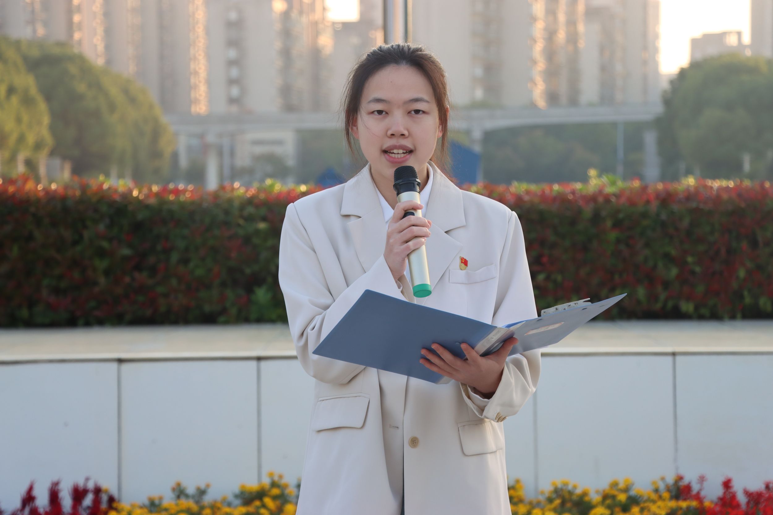 本科新生代表、2024级地理科学(师范)专业本科生傅云瑾发表国旗下的誓言。她呼吁全体新生追求真理,探索未知,担起新时代的责任与使命,牢记校训,坚守本心,为实现中华民族伟大复兴贡献自己的青春力量。