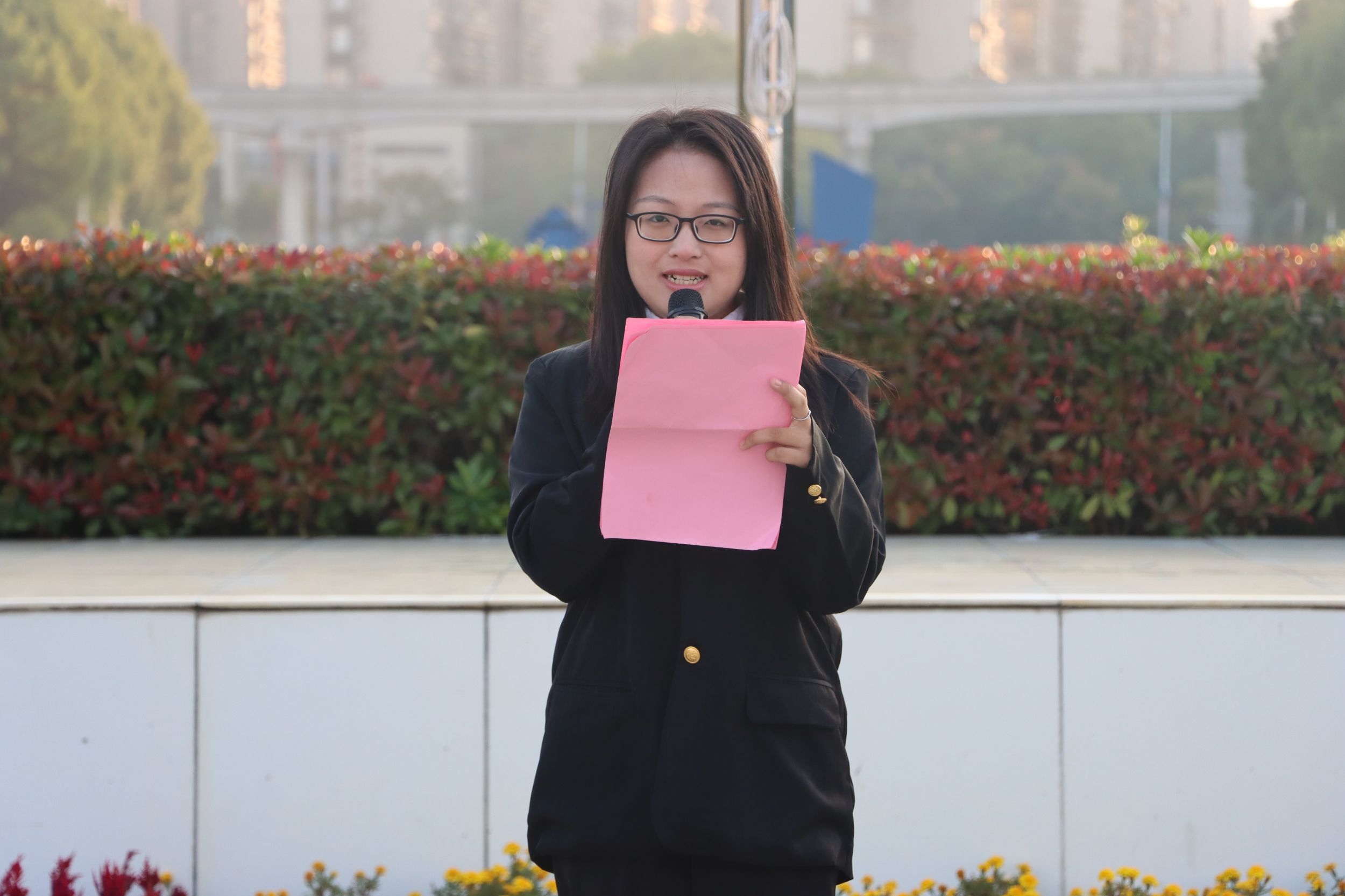 升旗仪式完成后,地旅学院2021级土地资源管理专业本科生赖姝媛作为老生代表,将自己的大学生活与学习经验倾心深谈,鼓励新生们全方位提升个人本领,希望新生们能成为有责任有担当的师大人。