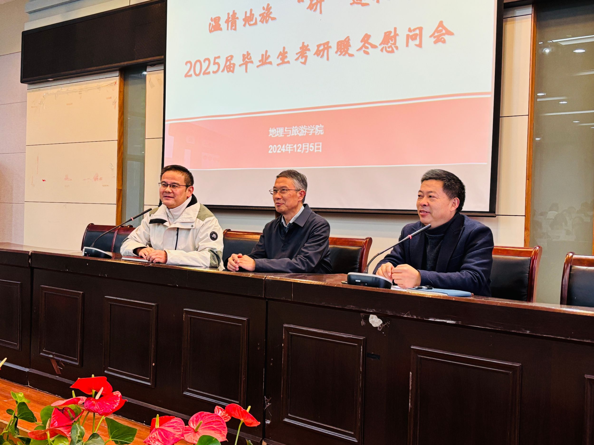 温情地旅,“研”途相伴。为缓解beat365考研学子备考压力、坚定考研信心、鼓舞考生士气,12月5日下午,学院于实验楼101报告厅举办“温情地旅 ‘研’途相伴”2025届毕业生考研冲刺指导慰问会。学院党委书记贾冠忠、副院长曹卫东以及毕业班辅导员出席活动。会议由学院党委副书记付勇主持。