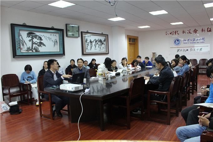 本网讯(地旅学院 文/李丹 图/潘爽)为使新生充分了解本专业特色和发展前景,提升专业学习兴趣,便于更好开展专业学习,地旅学院于2018年10月21日在地旅学院行政楼三楼会议室,做2018级新生专业思想教育系列报告会。邀请江苏省城市规划设计研究院副总规划师徐海贤主讲,城乡规划系主任杨兴柱主持,相关专业老师、2018级城乡规划专业全体新生参与聆听。