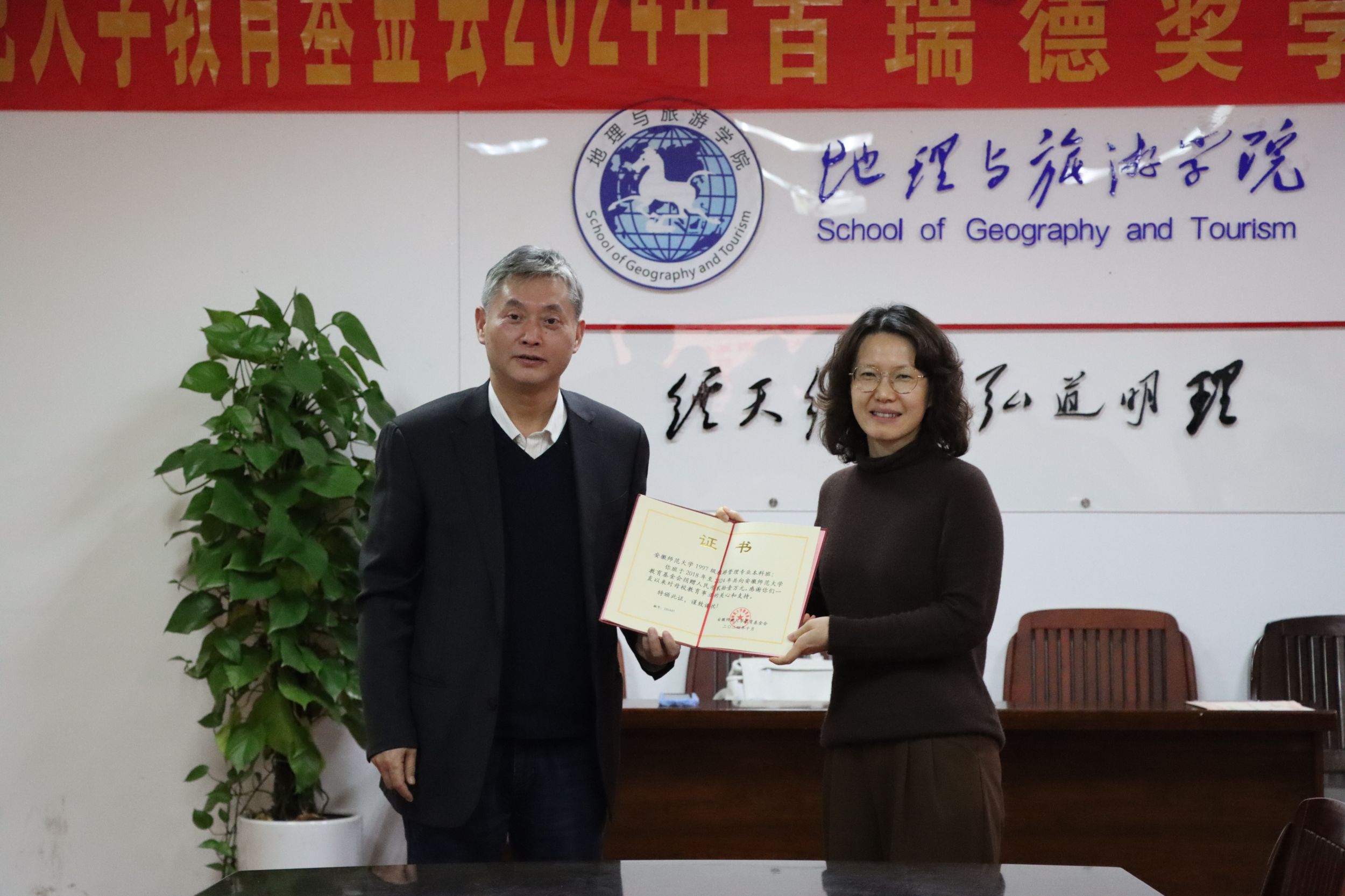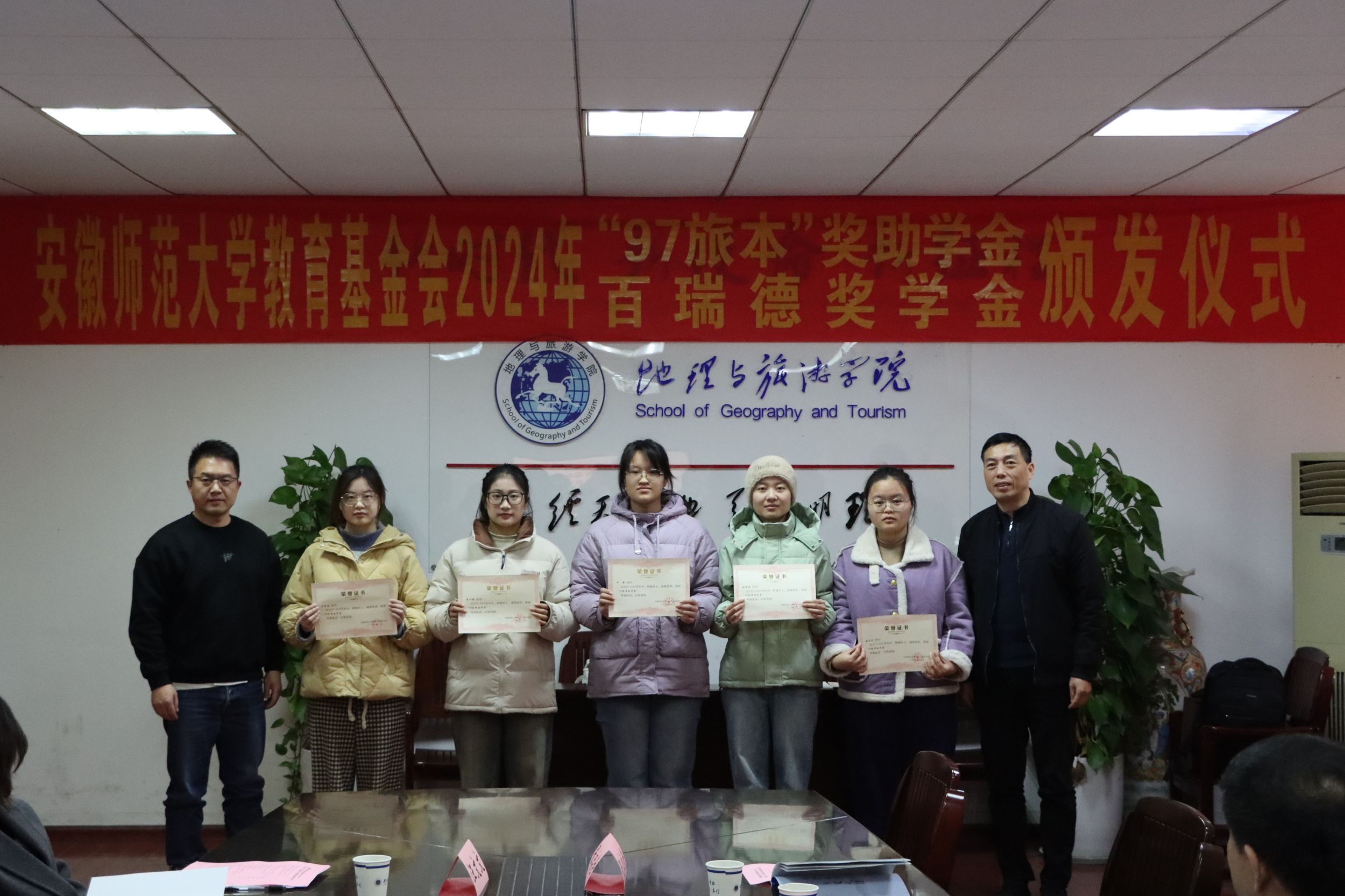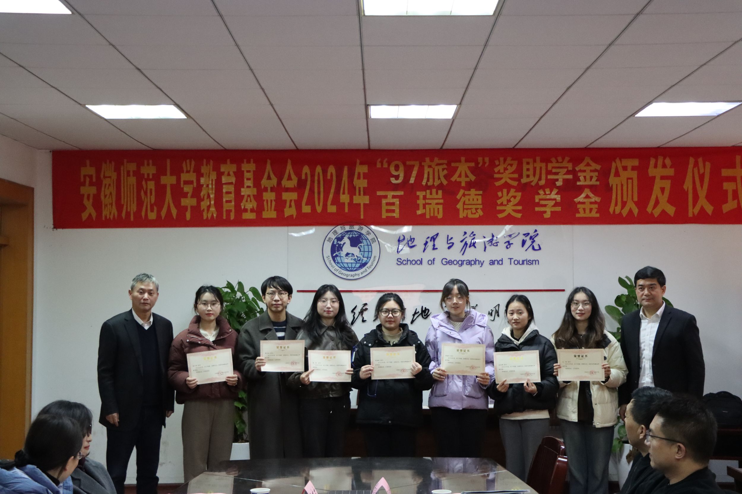 据悉,“97旅本”奖助学金是由我校1997级旅游管理专业本科班毕业生共同设立的,是我校班集体名义设立的本科生奖助学金之一。百瑞德奖学金则是由2002级旅游管理专业校友、宁波百瑞德光学仪器有限公司总经理程伟先生捐资设立,旨在专项奖励表现优异的学生骨干和积极参与社会实践的学生,成为师大首个专注于这一领域的奖学金项目。长期以来,地旅学院始终将资助工作视为重中之重,积极搭建全方位资助体系。目前,学院设立了“雷忠平奖助学金”“明达奖助学金”“97 旅本奖助学金”“百瑞德奖助学金”“芜湖北大奖助学金”以及“松茂奖助学金”等 6 项院级社会奖助学金项目,每年资助总额高达 73 万元。