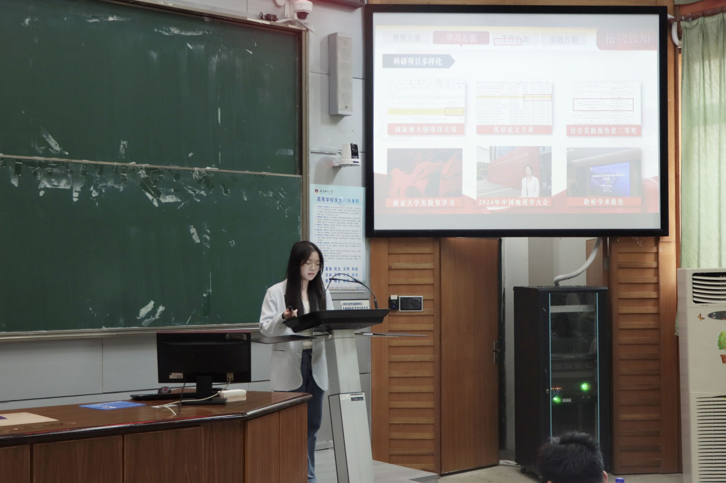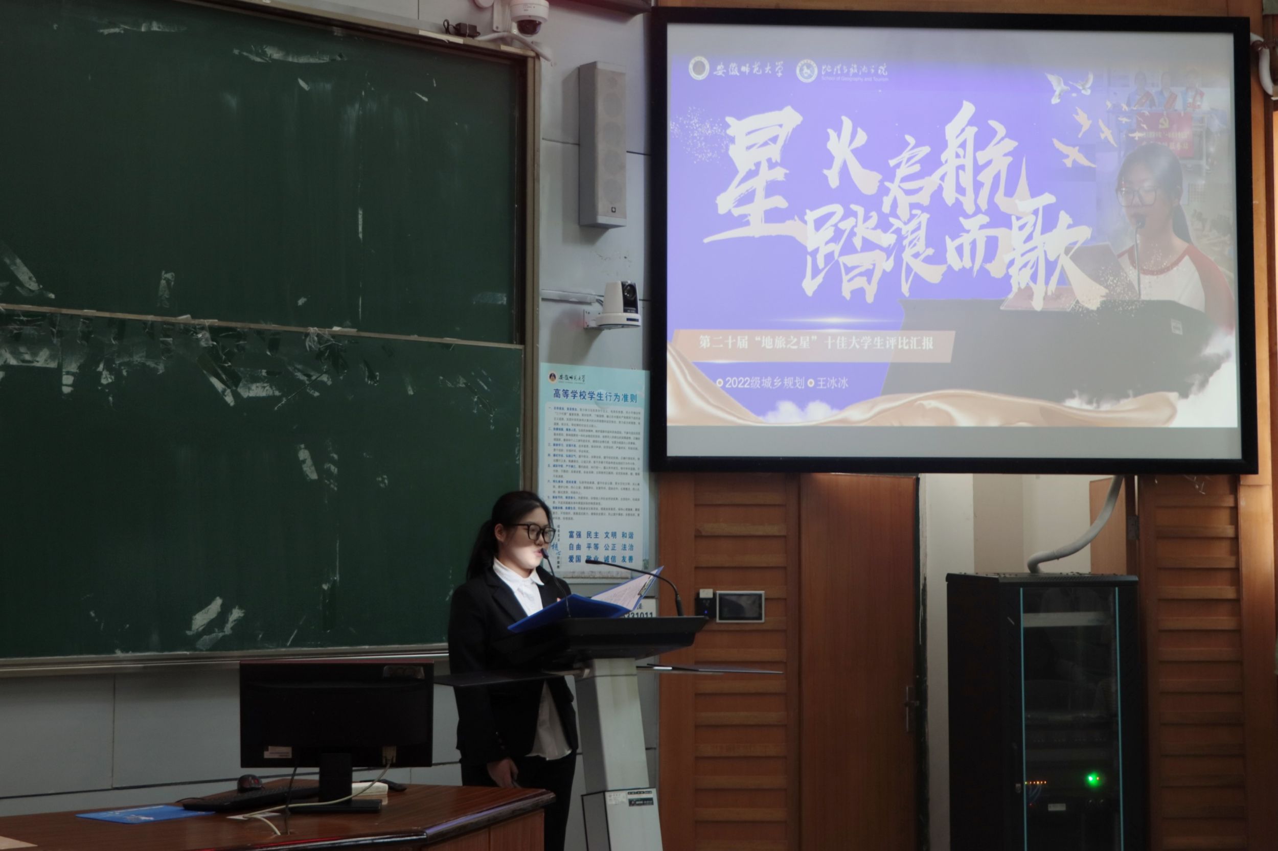 其中,2022级城乡规划专业的王冰冰立鲲鹏鸿鹄之志,始终坚持全面发展,努力提升自我水平,连续两年4次参与优秀暑期实践团队,连续两年获评优秀实践个人。2021级地理科学师范专业的翁丹煜成绩优异,连续四年获校一等奖学金,现已成功推免至华东师范大学。2023级地理科学师范的王顺棋风雨同舟,涌心服务,参加安徽文辉文化传媒团队工作,累计发送文案2400余条,服务客户40余户,2023级地理科学师范专业的朱昱桐从知责于心到担责于身,成为哈尔滨2025年第九届亚冬会数字火炬手,为国家体育赛事的进步贡献自己的力量。参选的同学们一一讲述着自己的奋斗足迹,充分展现了地旅学子勤思进取的精神和奋发拼搏的意志。最后,地理科学专业副教授、22级旅游管理专业兼职辅导员姚有如发表总结点评,对参赛同学的奋斗事迹予以鼓励。