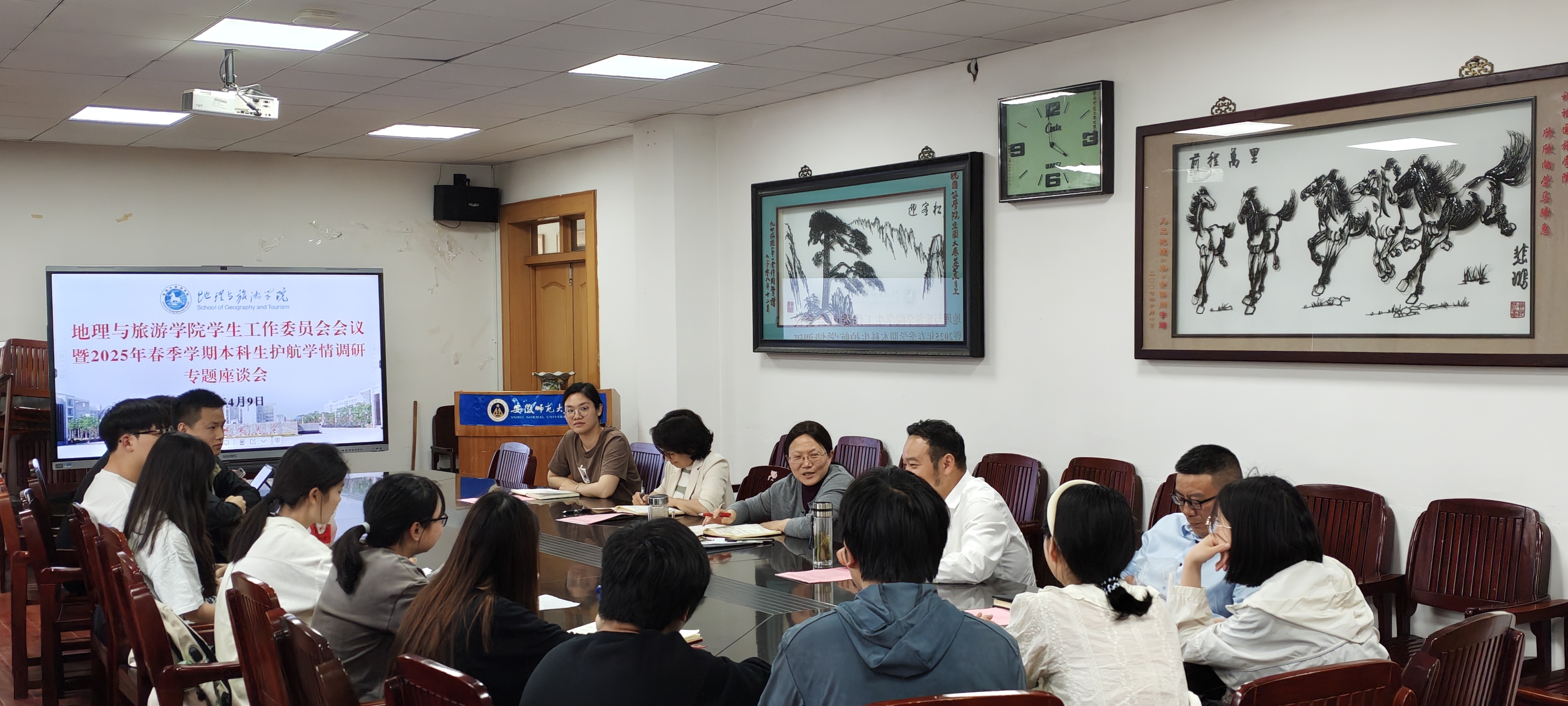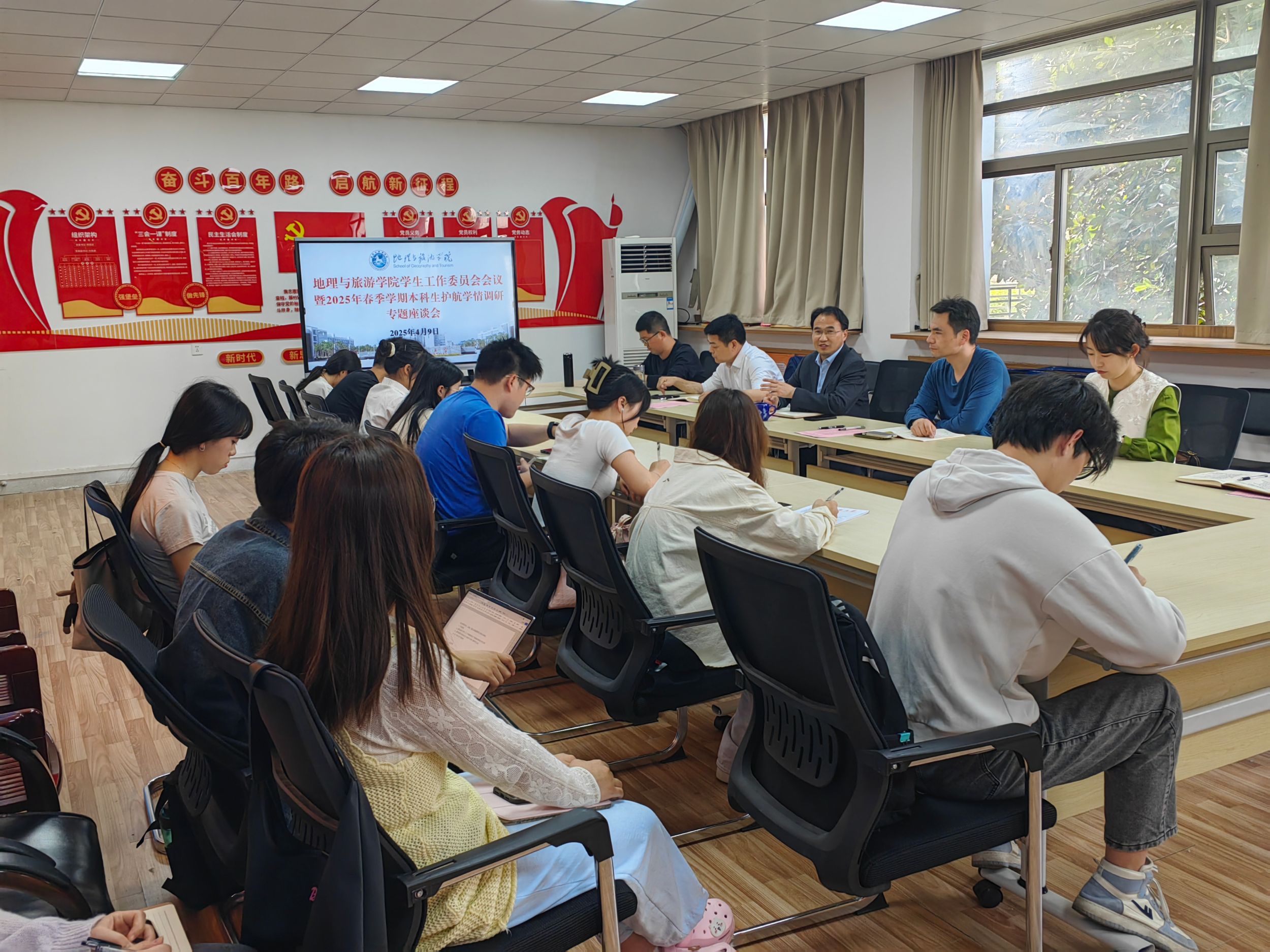 为扎实推进时代新人铸魂工程,全面实施大学生护航行动计划,有针对性做好学生教育管理和服务工作,4月9日下午,beat365英国官方网站在学院行政楼召开学生工作委员会会议,专题研判2025年春季学期本科生护航学情。座谈会根据专业和年级分为地理地拔地信(非毕业班)、旅游土地城规(非毕业班)和2025届本科毕业生分会场,学院学生工作委员会委员、辅导员以及各班级学生代表参加会议。