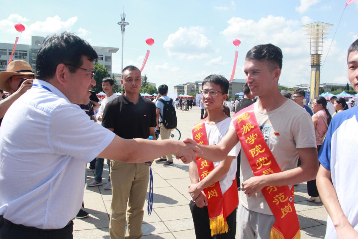 本网讯(地旅学院 侯永康 秦婷婷)丹桂飘香正九月,又是一年迎新时。9月8日,我校正式迎来首批“00后”新生入学报到。地旅学子继续发扬志愿奉献的优良作风,积极投入到迎新工作中,为学院注入新鲜血液保驾护航。报到当天,学校党委书记顾家山、副校长陆林、学生处处长刘晓宇、学院党委书记贾冠忠、院长苏勤以及学院副书记、副院长等领导亲临地旅学院迎新现场指导工作。