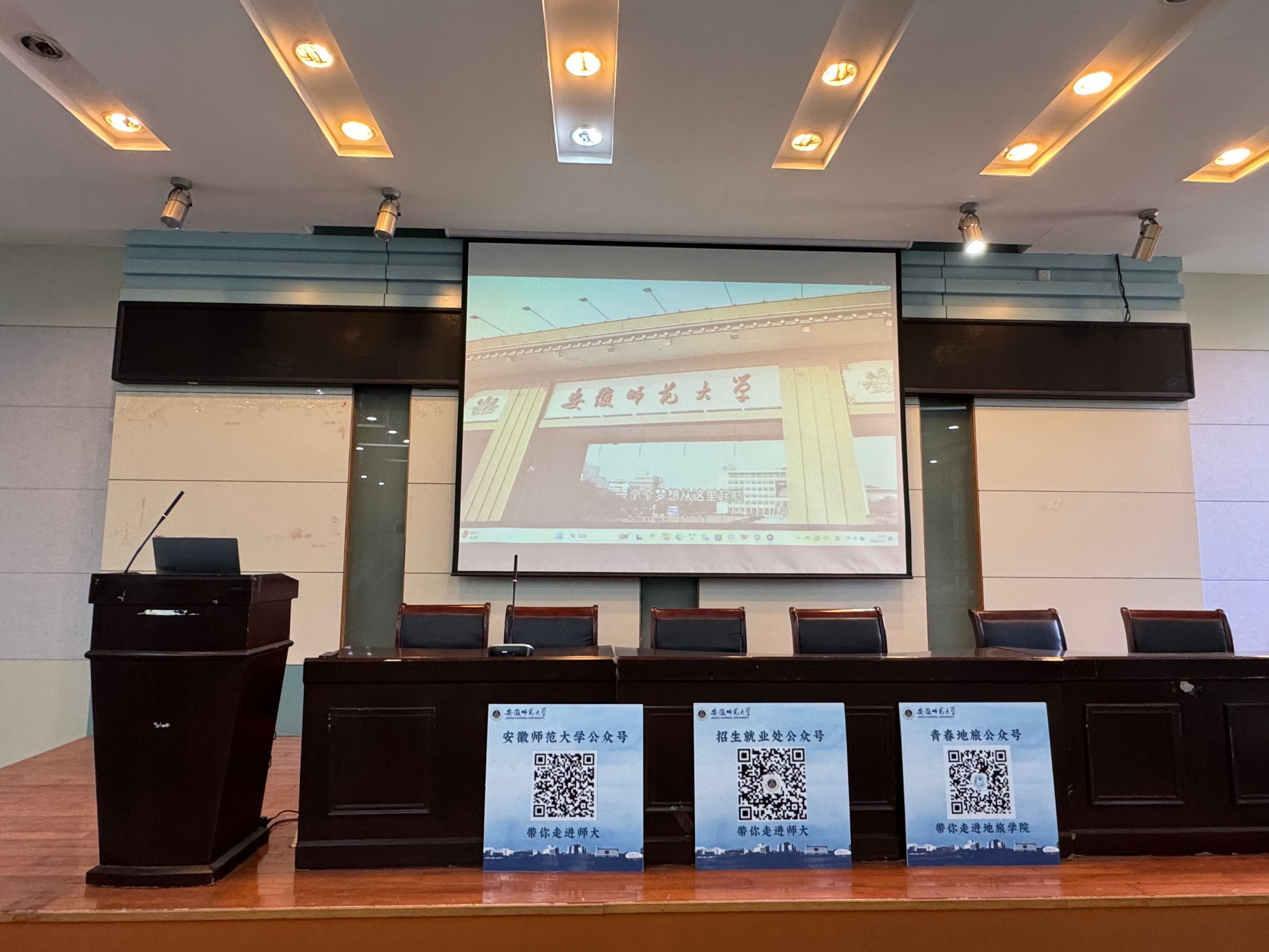 在实验楼两侧设置“历届毕业校友合影”“知名校友事迹”和地旅学院“师资风采”呈现百余名优秀校友和教师的事迹,以鲜活榜样激发学子专业热情。在101报告厅的大屏上循环播放学校和学院招生宣传视频,相关老师现场解读学校和学院办学情况,志愿者线路引导过程中讲解校园景点和大学生活,激发学生对beat365英国官方网站的向往和后续报考的热情,同时张贴学校官方公众号动员学生关注了解更多学校动态。