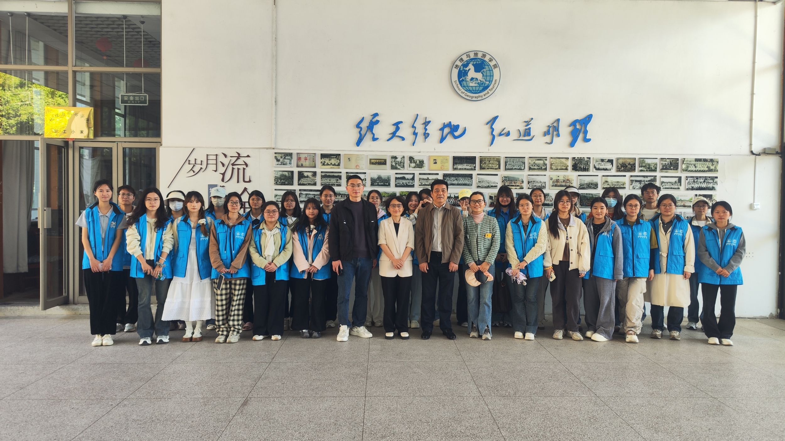 作为本次活动的策划方之一,依托学院专业学科特色,精心设计了“大学体验”“地质探秘”“学科对话”三大研学模块。从校园参访路线规划到地质实验室、标本馆参观,不断打磨研学课程细节,确保活动兼具趣味性与专业性。在花津校区的参访中,企业导游与学院志愿者组成“双导师”讲解团,带领学生漫步花津河畔、探访敬文图书馆,生动讲述师大百年文脉与校训精神。“通过校友企业的支持,校园文化传播更‘鲜活’了。”旅游管理专业负责人尹寿兵感慨道。